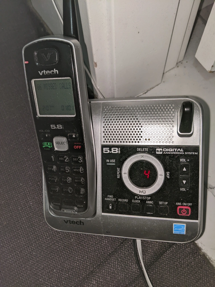 Cordless phone with answering machine. Includes one handset. Very convenient, no need to pay for voice message system serious Inquiries only no delivery