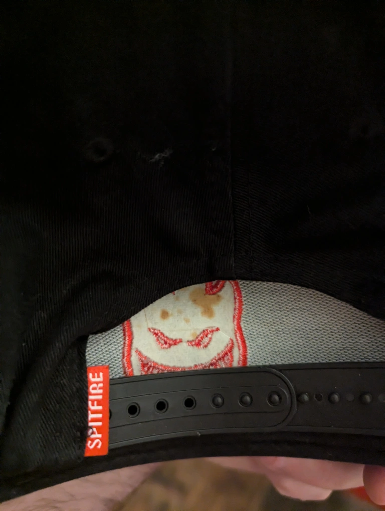 Black and red snapback hat, adjustable size. The hat has a red embroidered logo with the Spitfire brand. Absolutely no holds. First come, first served. Pickup only. The price is firm and non-negotiable. I accept cash or e-transfer only. I'm located in the Etobicoke area near Scarlett road and Eglinton Avenue West at 25 Richview Road. Please only contact me if you are seriously interested in buying thank you. Also please be sure to check out my other listings. If you are still seeing this listing it's still available.