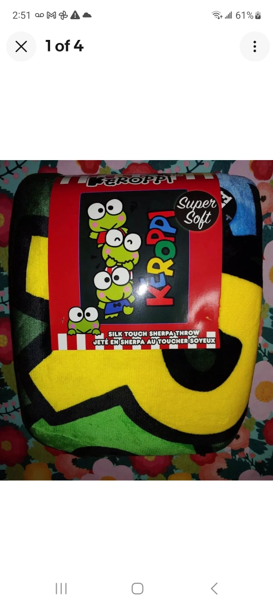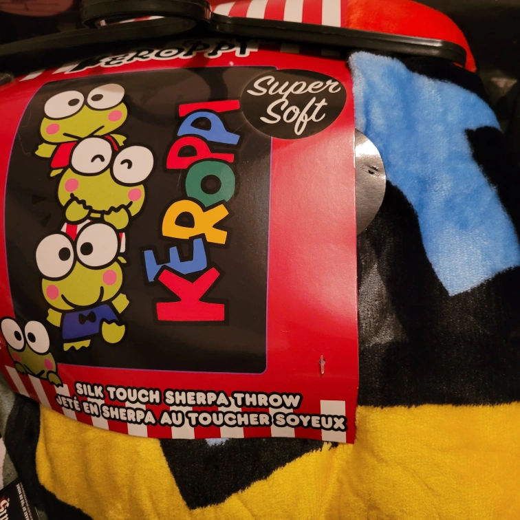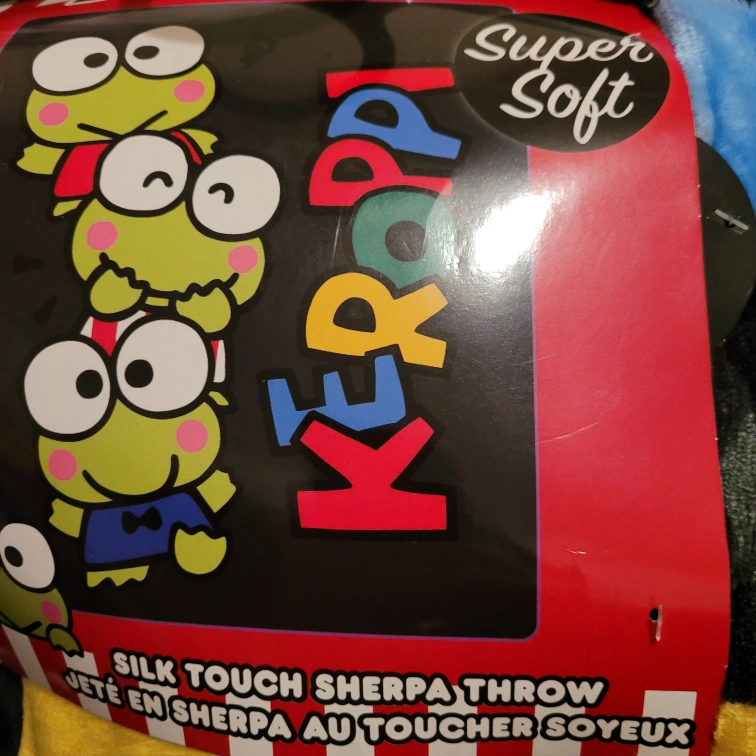Super soft plush throw blanket featuring Keroppi. Silk touch sherpa.
