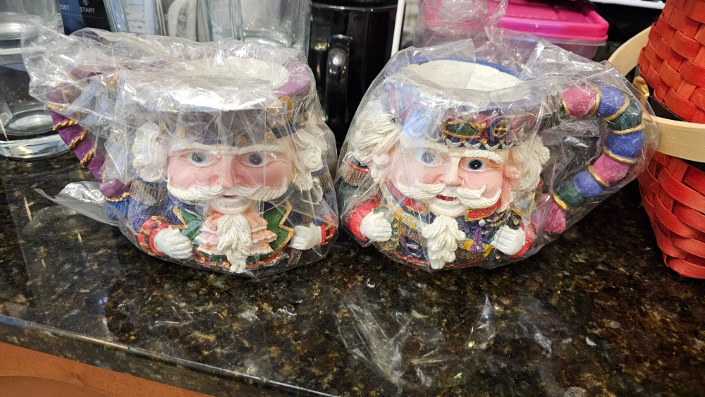 Set of two ceramic nutcracker themed mugs. They are both in excellent condition and have never been used. They are approximately 4 inches tall.