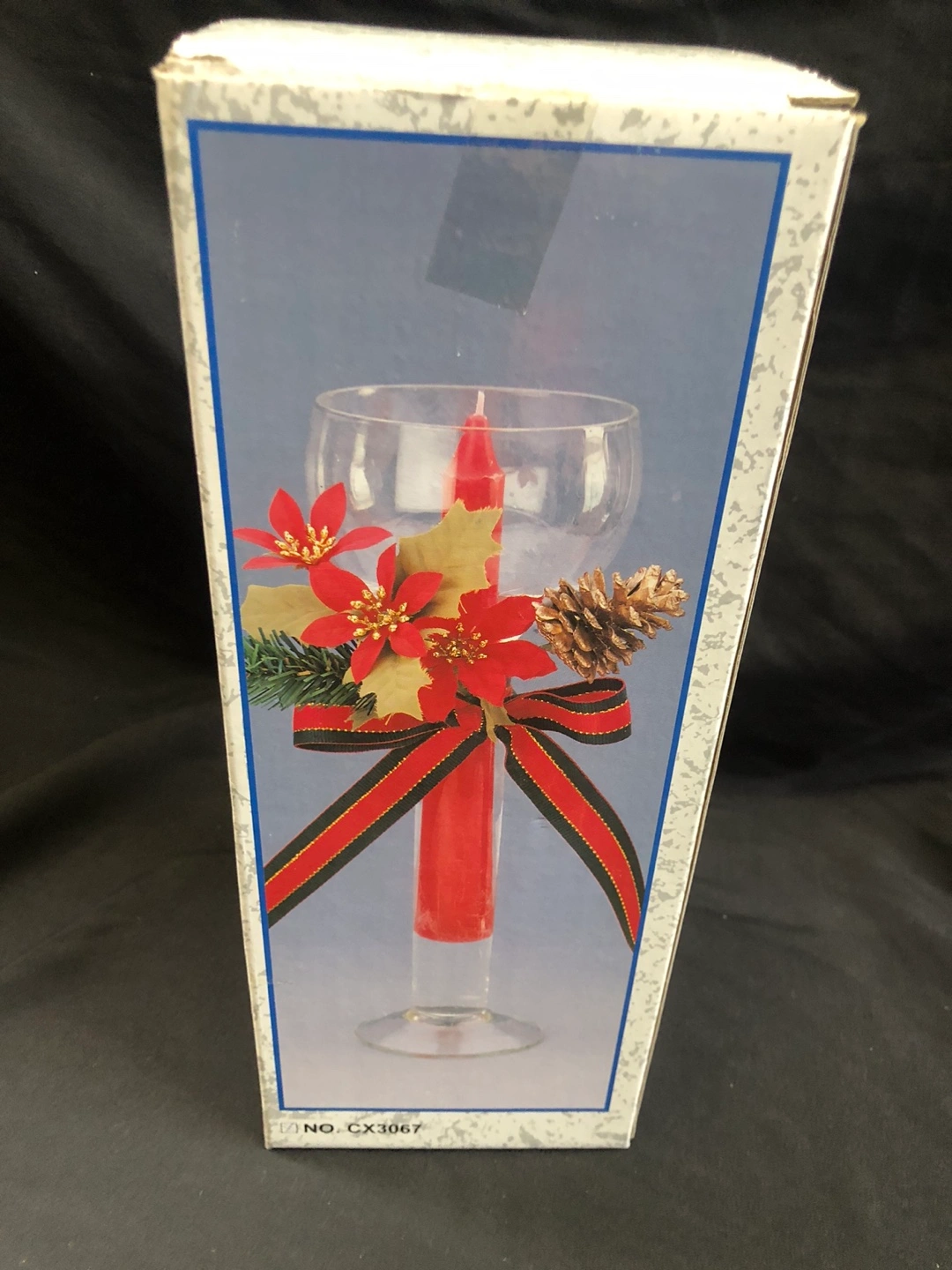new Vintage Christmas Candle Holder Glass candle holder with a red candle. Comes with a red, black and gold ribbon and a small pine cone. $1 Pick up Victoria Park and O’Connor area