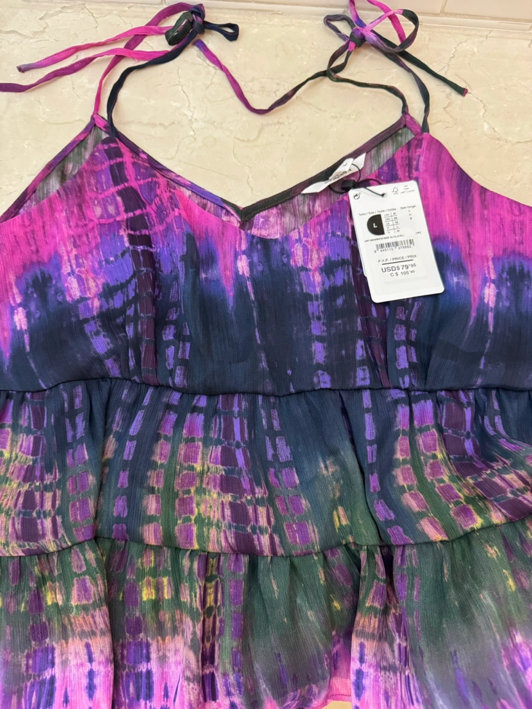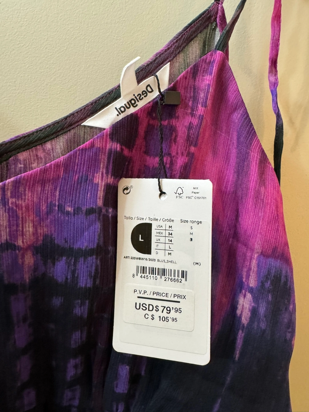 NEW desigual Purple and black tie dye tank top with a ruffle hem. Size large. Cash Pick up near Lawrence and Keele Open to Offers