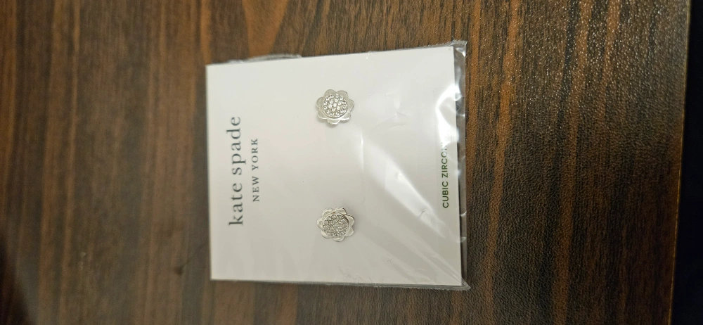 Silver flower-shaped earrings with cubic zirconia. New with tags.