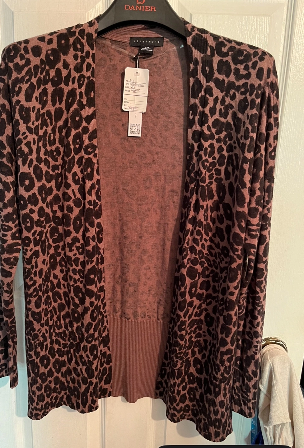 Brand new high end Sanctuary open cardigan animal print. Although size XXS it is very roomy and fits up to a medium. Serious buyers only please. Porch pick up at McCowan and 16th in Markham.