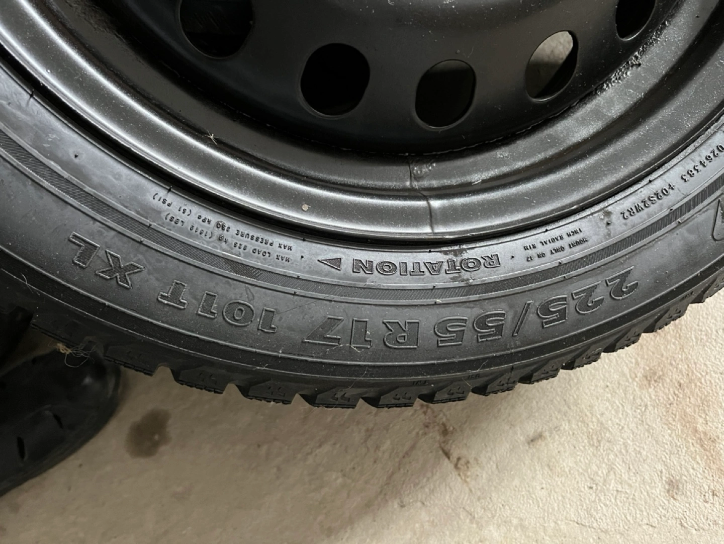 2 Tire size: 225/55R17 101T XL. Max load 825 (1819 lbs). Max pressure 259 psi.