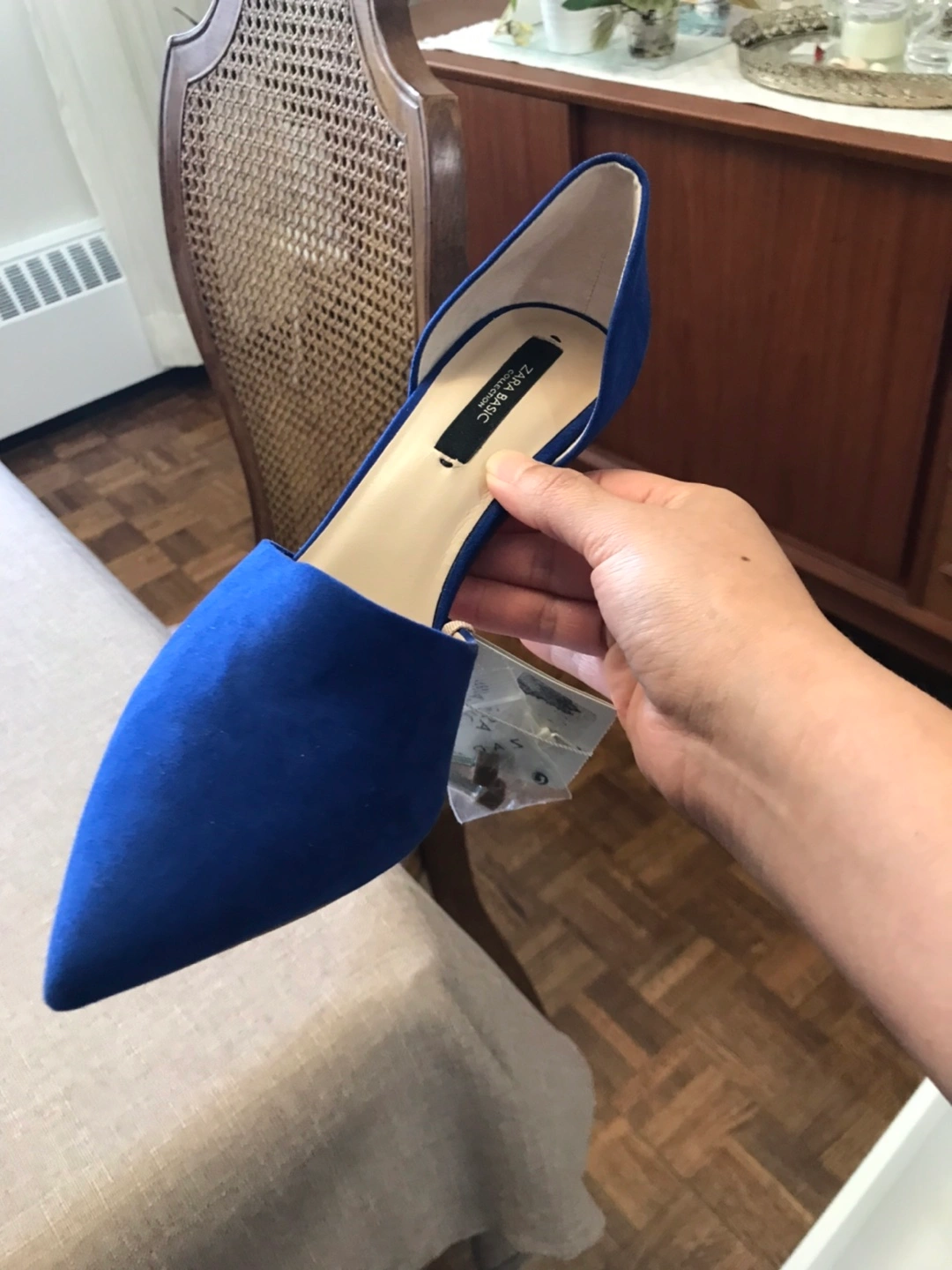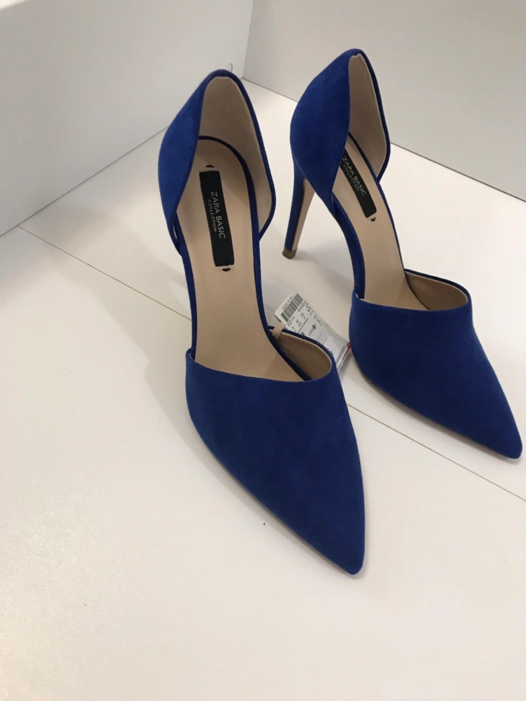 NEW Blue suede heels with a pointed toe and a stiletto heel. Size 37. Comes with a pair of heel replacement