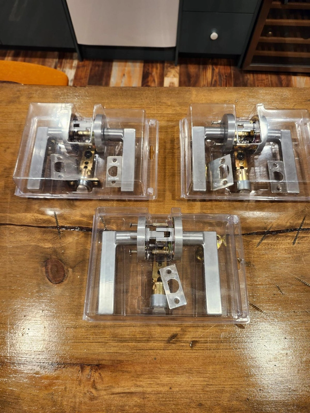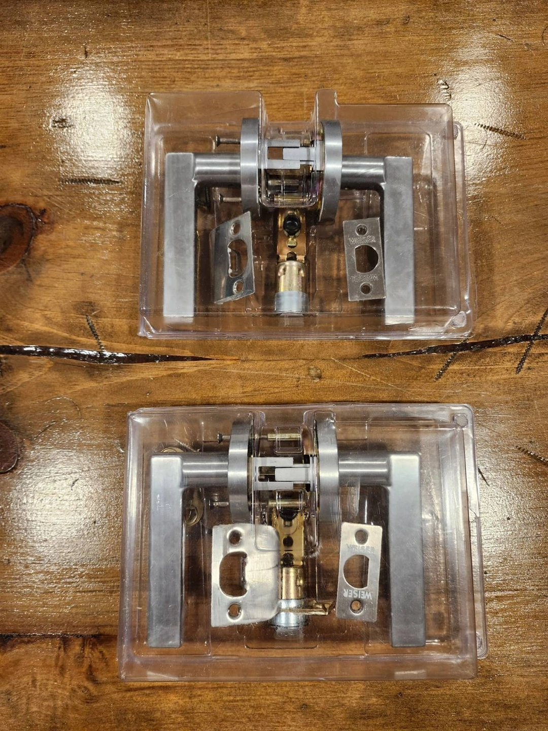 Weiser door handles. Brushed nickel. Two available - 2 passage. $20 each. Pick up North Etobicoke. Albion and Islington. Sold Privacy handle