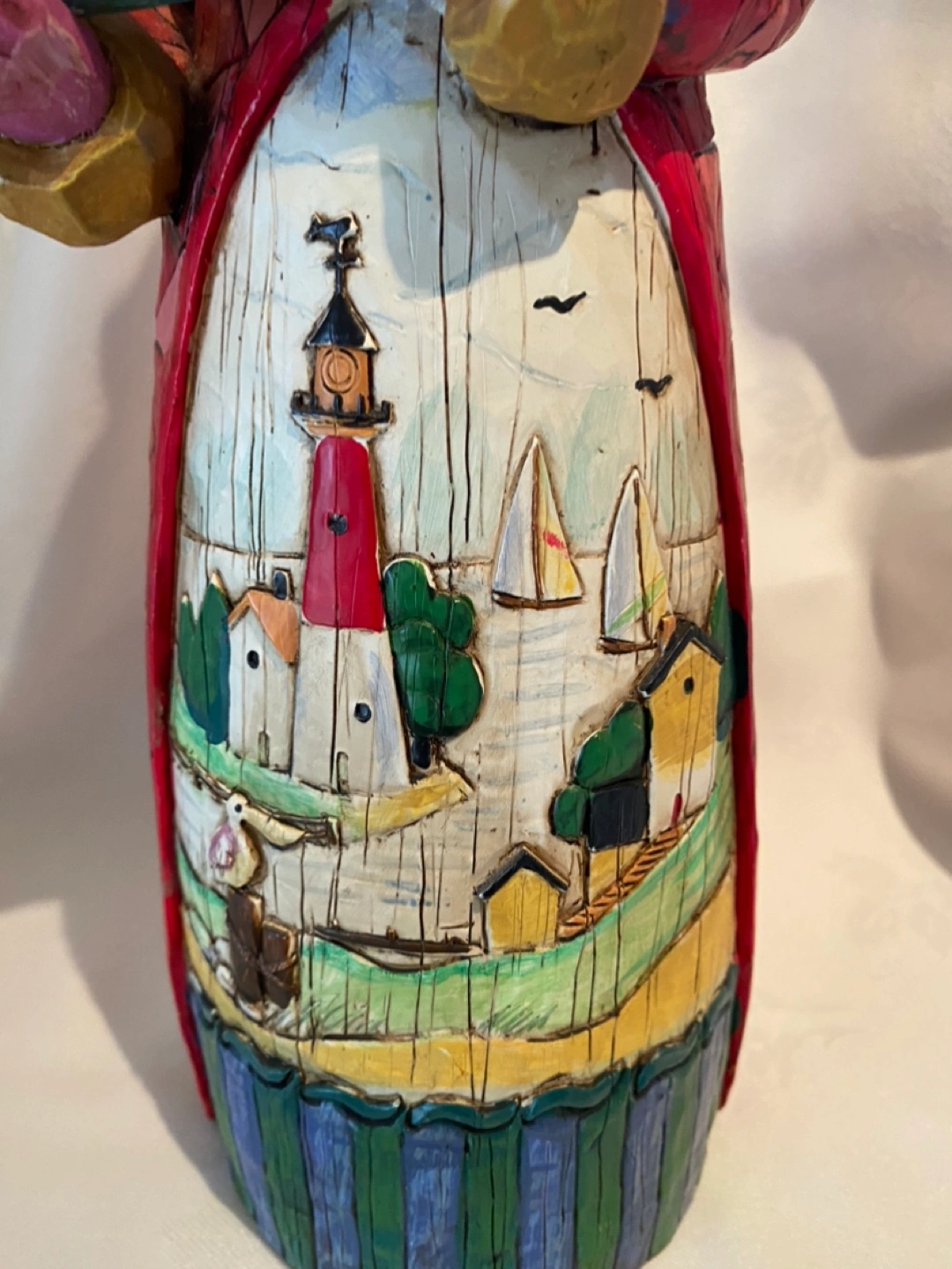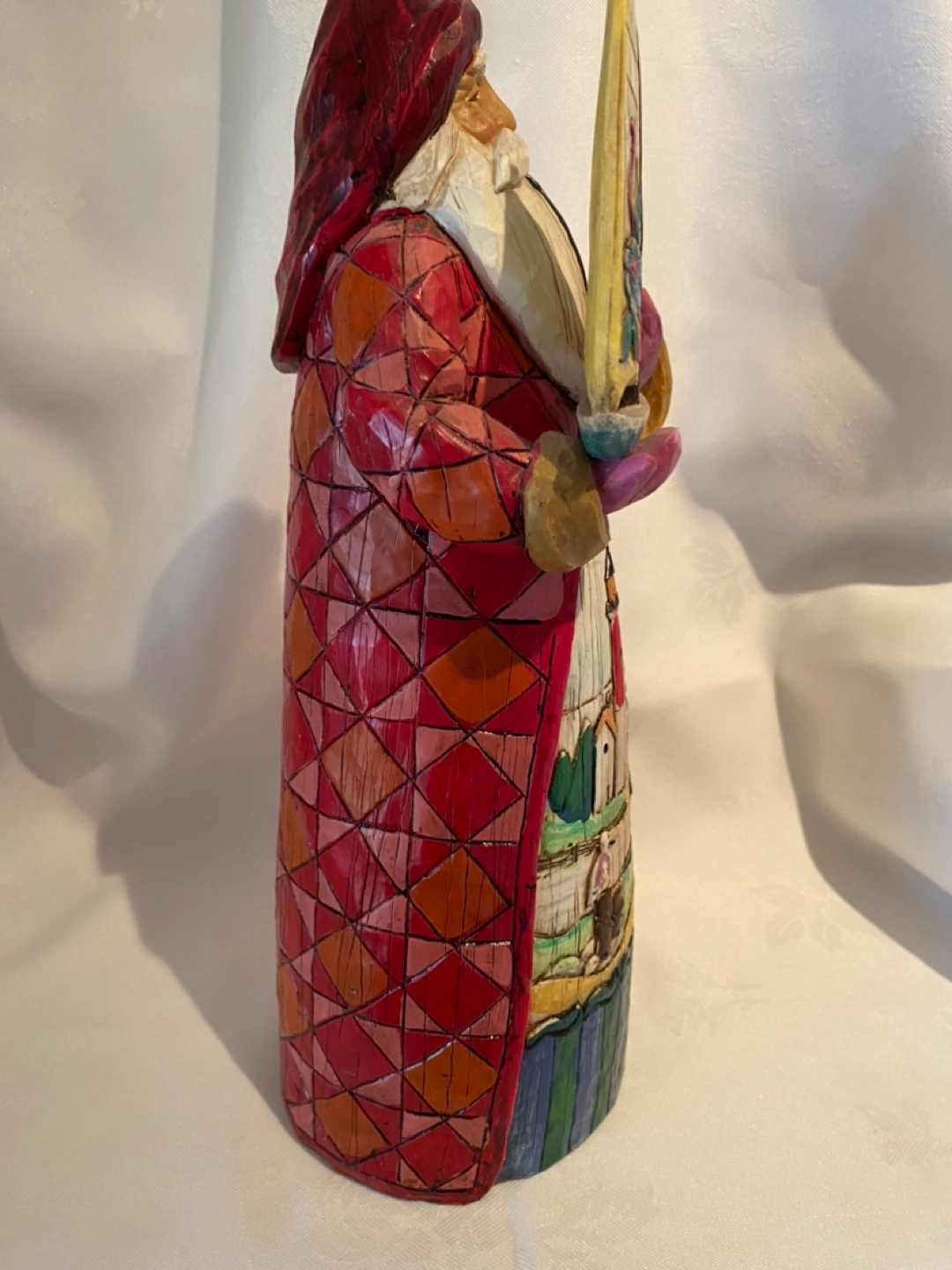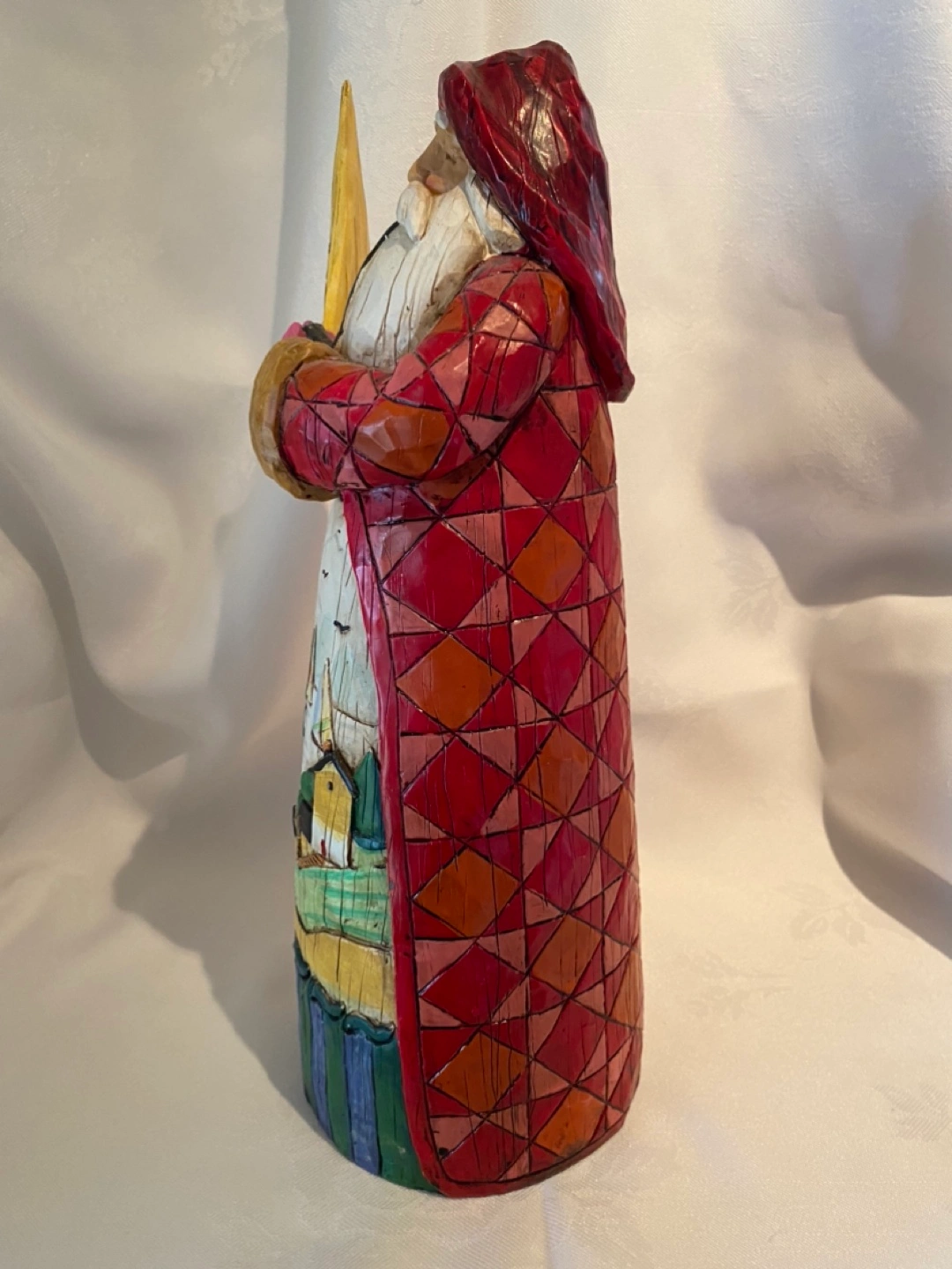 Santa figurine with red and orange plaid coat holding a sailboat. A seaside town scene is on the front. 12 inches tall. Great addition to your Christmas decorations. Has a nice solid weight. Eglinton West , Dufferin Area. Toronto