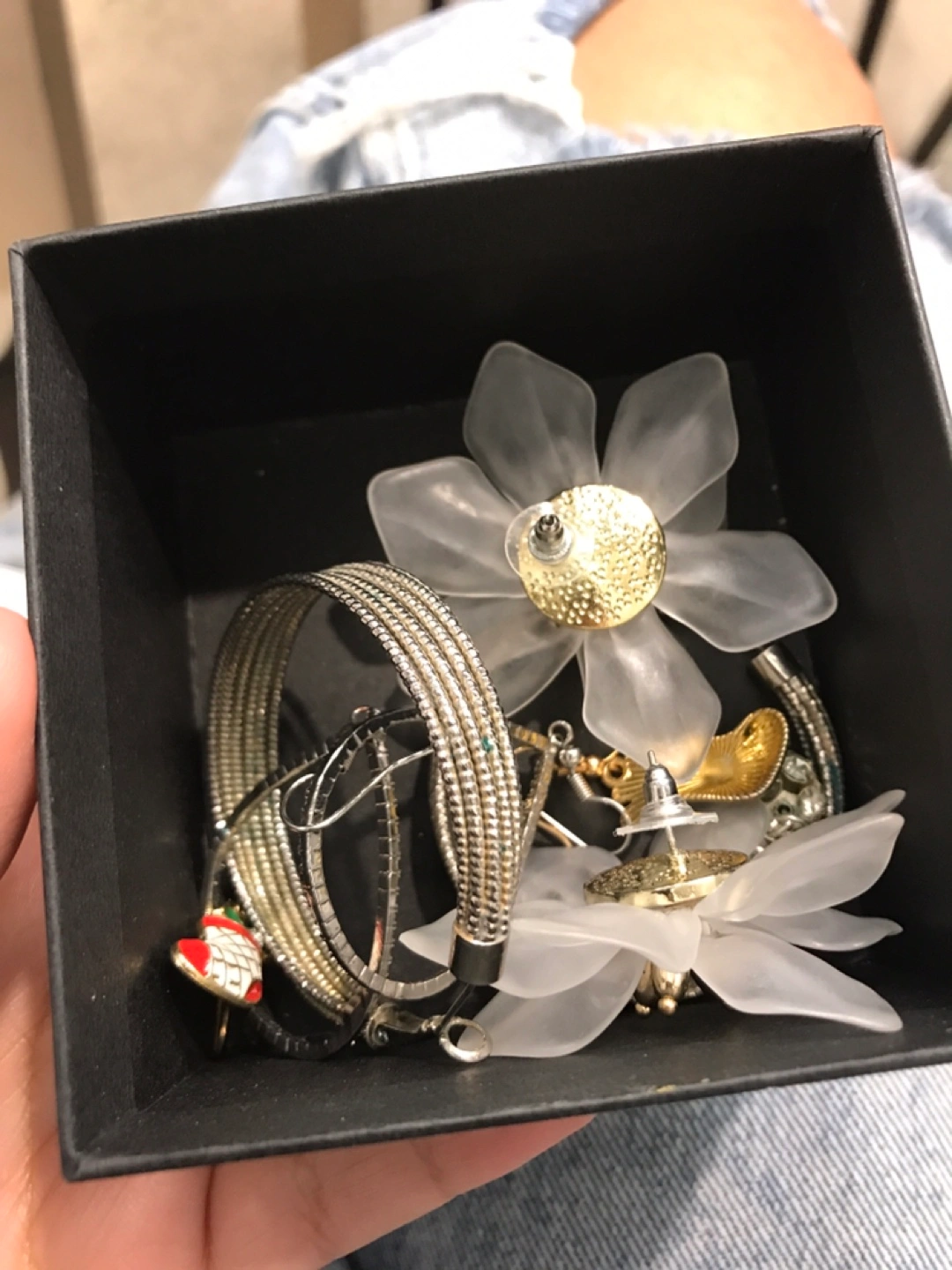 Set of earrings and bracelets, flower-shaped earrings, silver bracelets, and other jewelry Pick up point Scarborough town centre Near mc Donald’s If interested message me