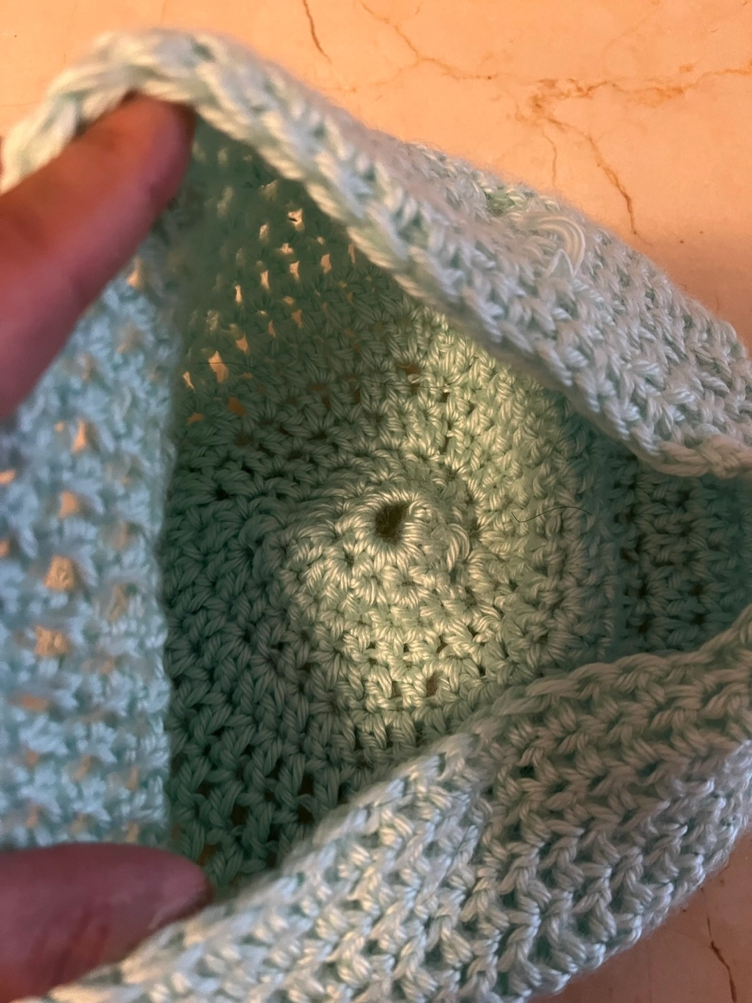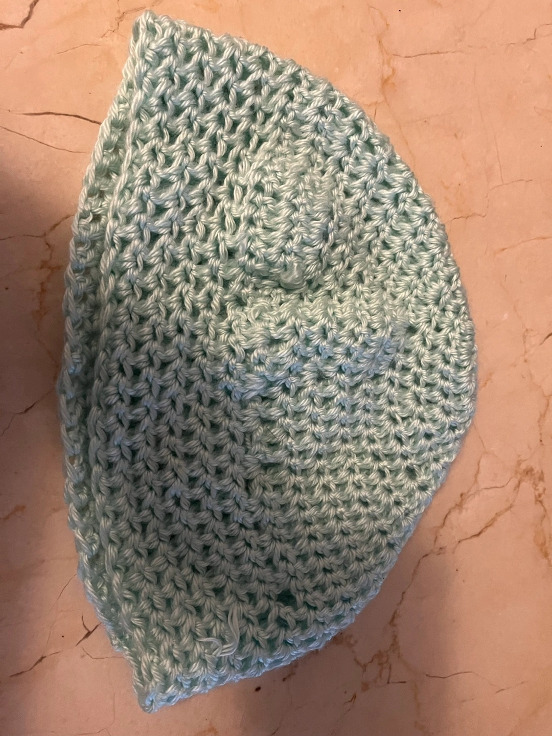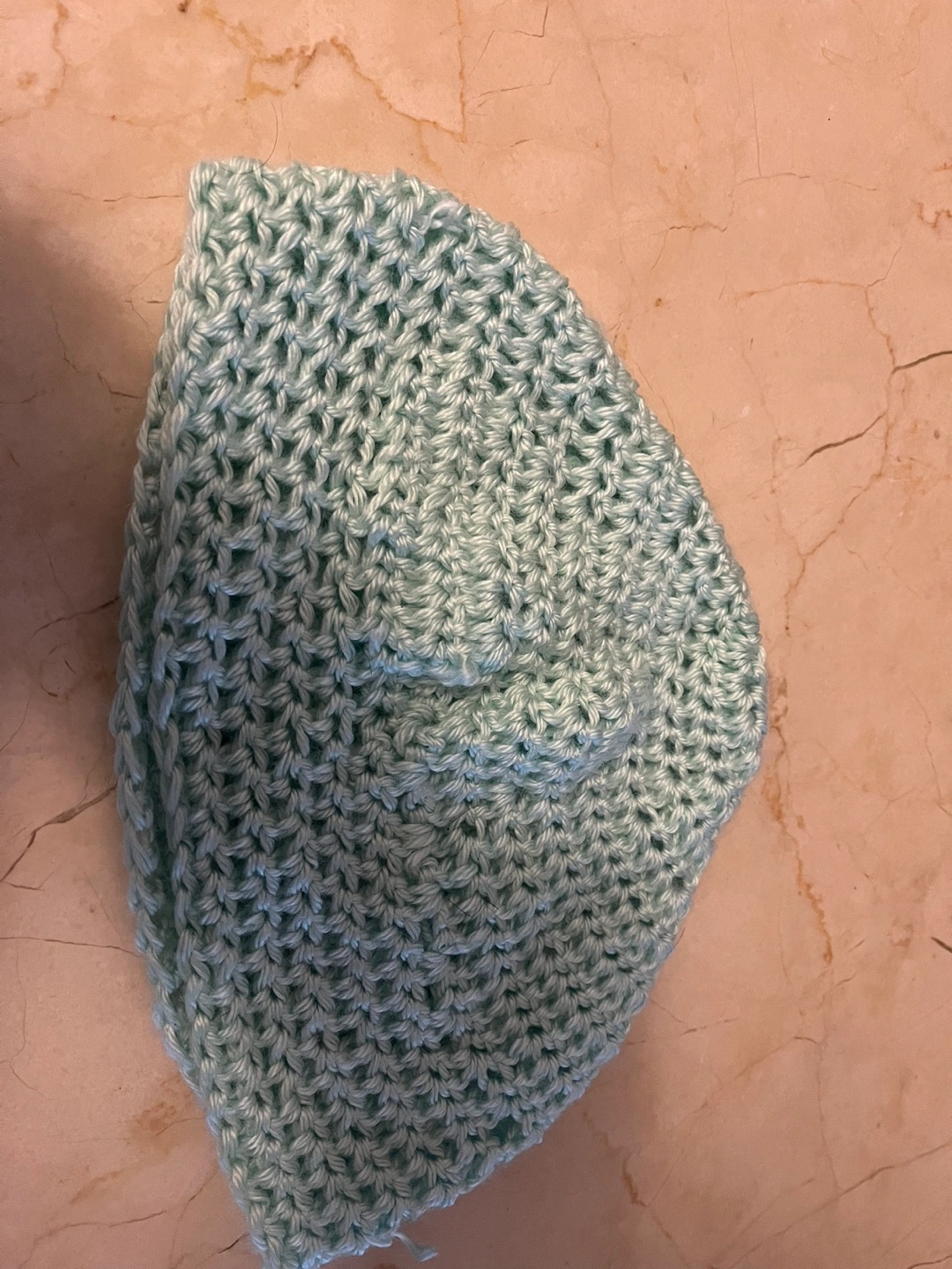 Crocheted baby hat in a light blue colour. Great for a newborn baby.