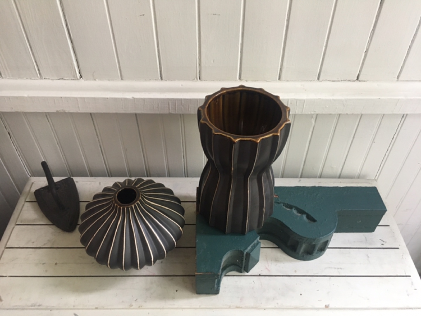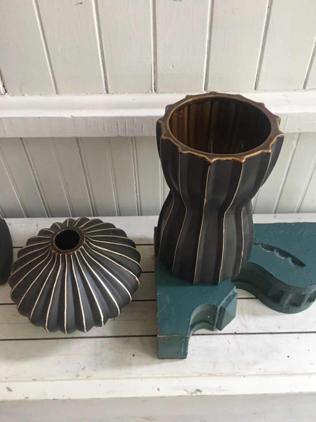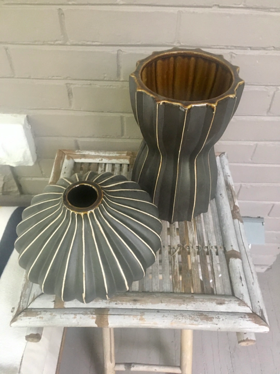 Brown vases $15.00 each Large: 11x6 Small: 9x7 Inches / approximate Ceramic Good/substantial weight to them