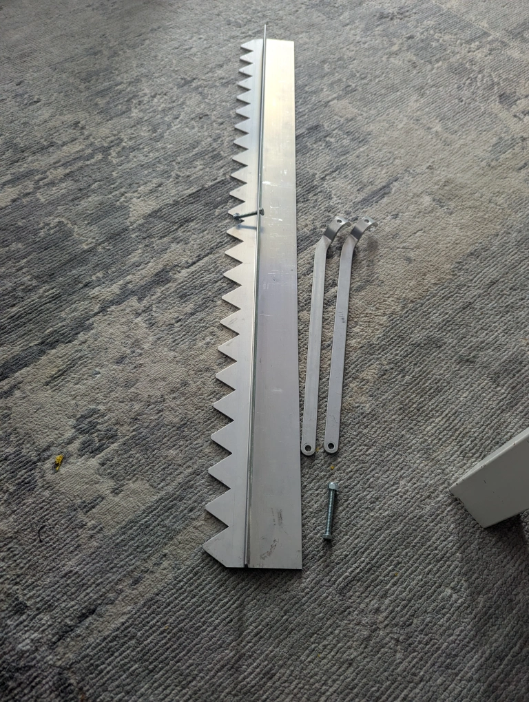 Metal tool used for removing snow and ice. Includes 2 metal brackets and a screw. Made in China. I don't know what is this so please check picture after u can buy