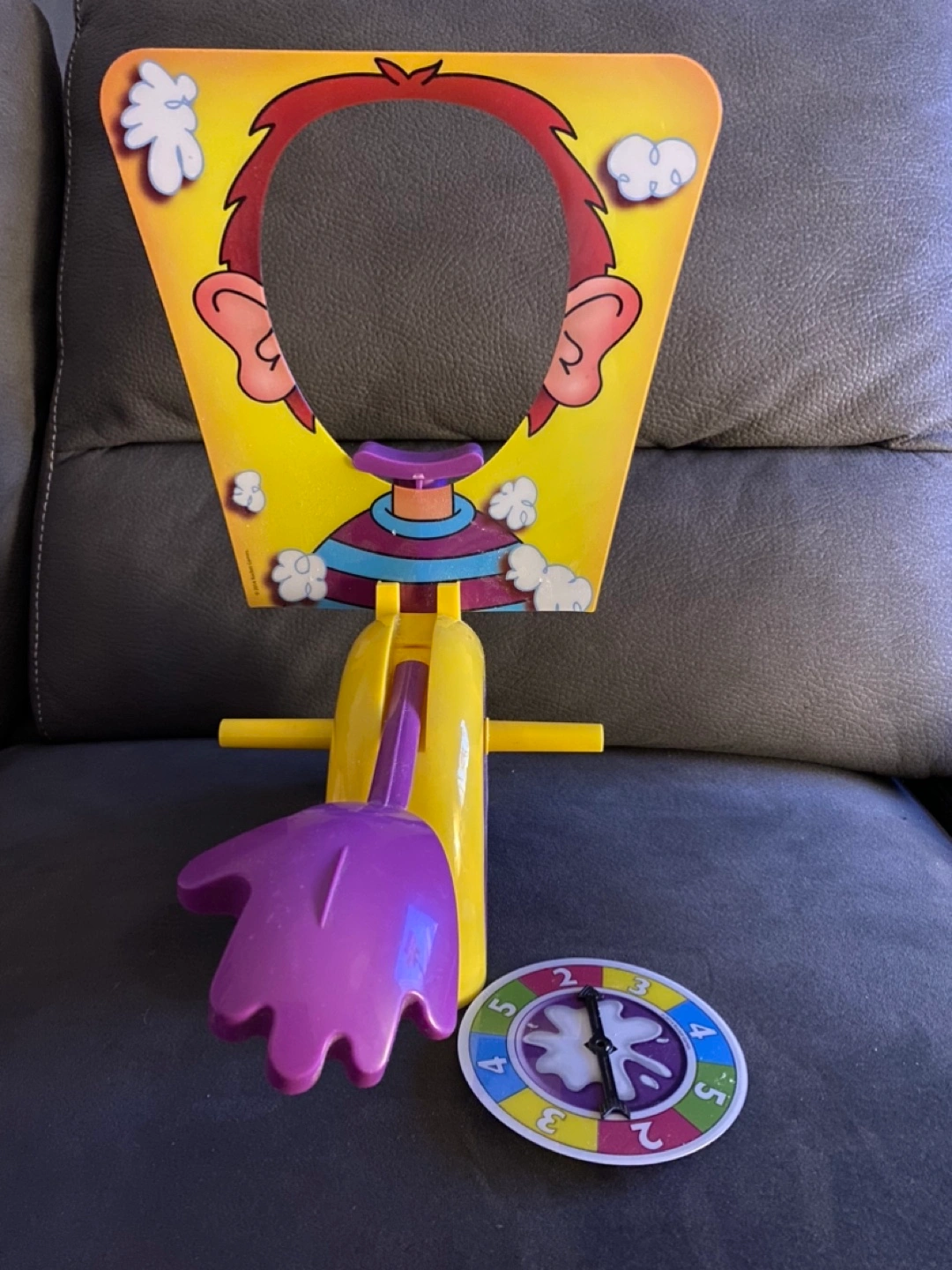 Hilarious, family fun! First player to score 25 points wins! Pie-throwing arm could go off at any moment! Players score points every time they avoid getting whipped cream in the face!