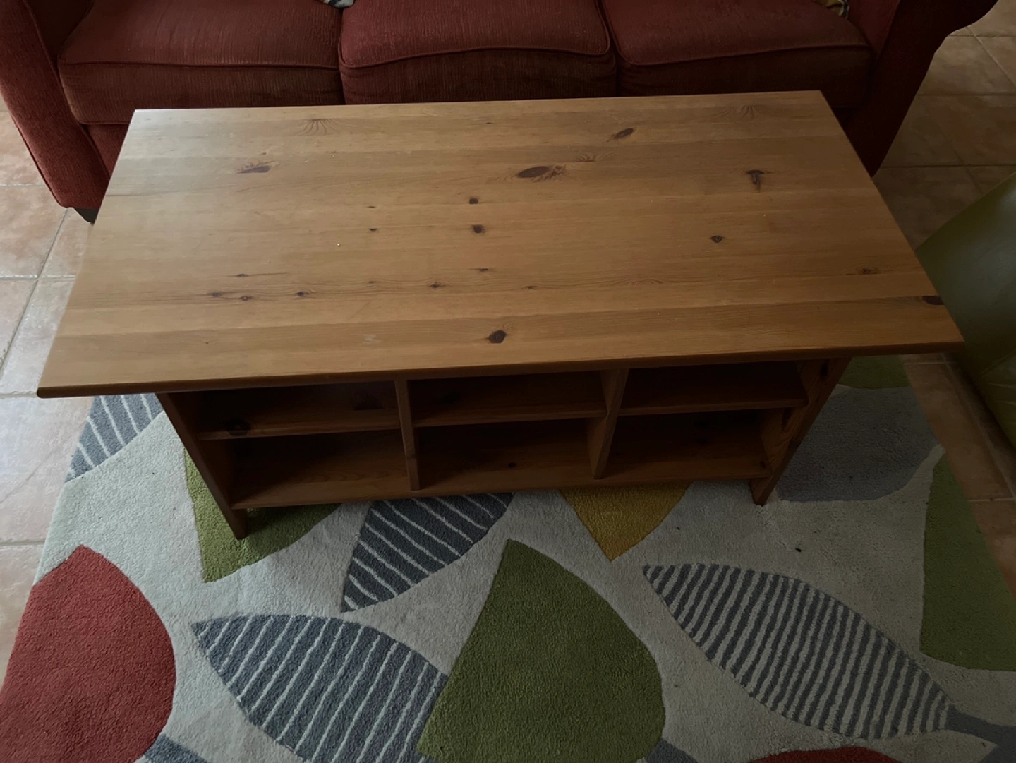 Solid wood coffee table with storage shelves. Great for a living room or family room.