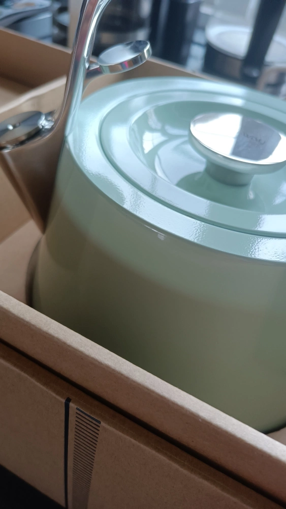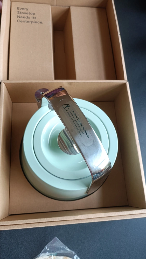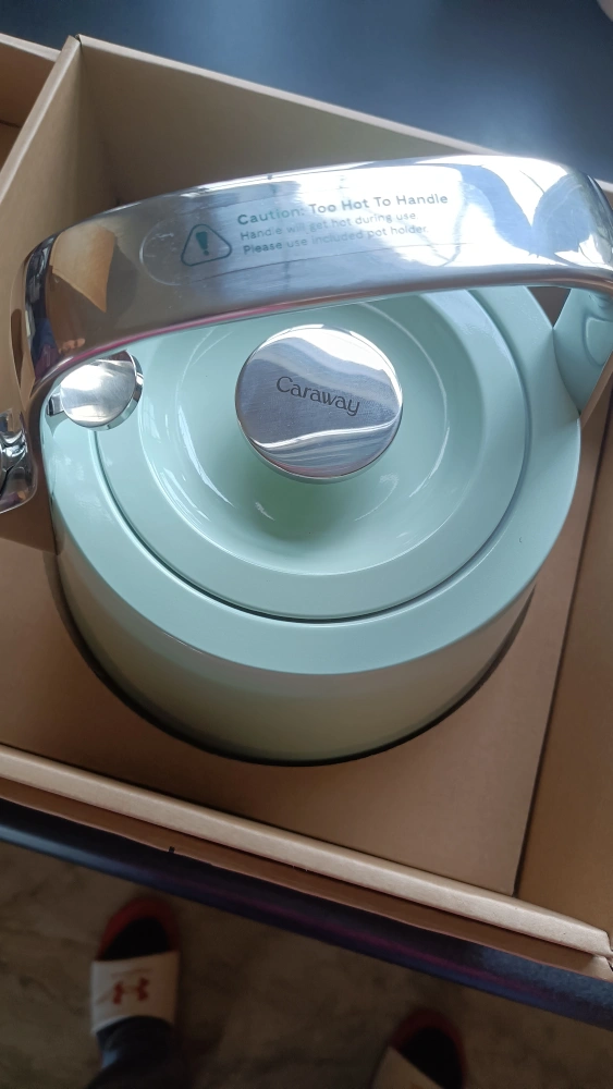 Brand new in box. Caraway Stovetop Whistling Kettle in the Mist color. It's a non toxic stainless steel material. It is free from PTFE, PFOA, PFAs, lead, and cadmium. 2QT capacity, designed for fast boiling. Retails for over $300.