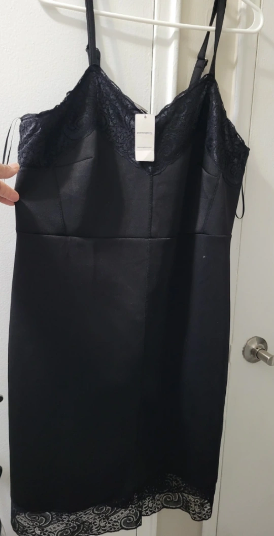 Black slip dress with a lace trim. Spaghetti straps. Size X. New with tags.