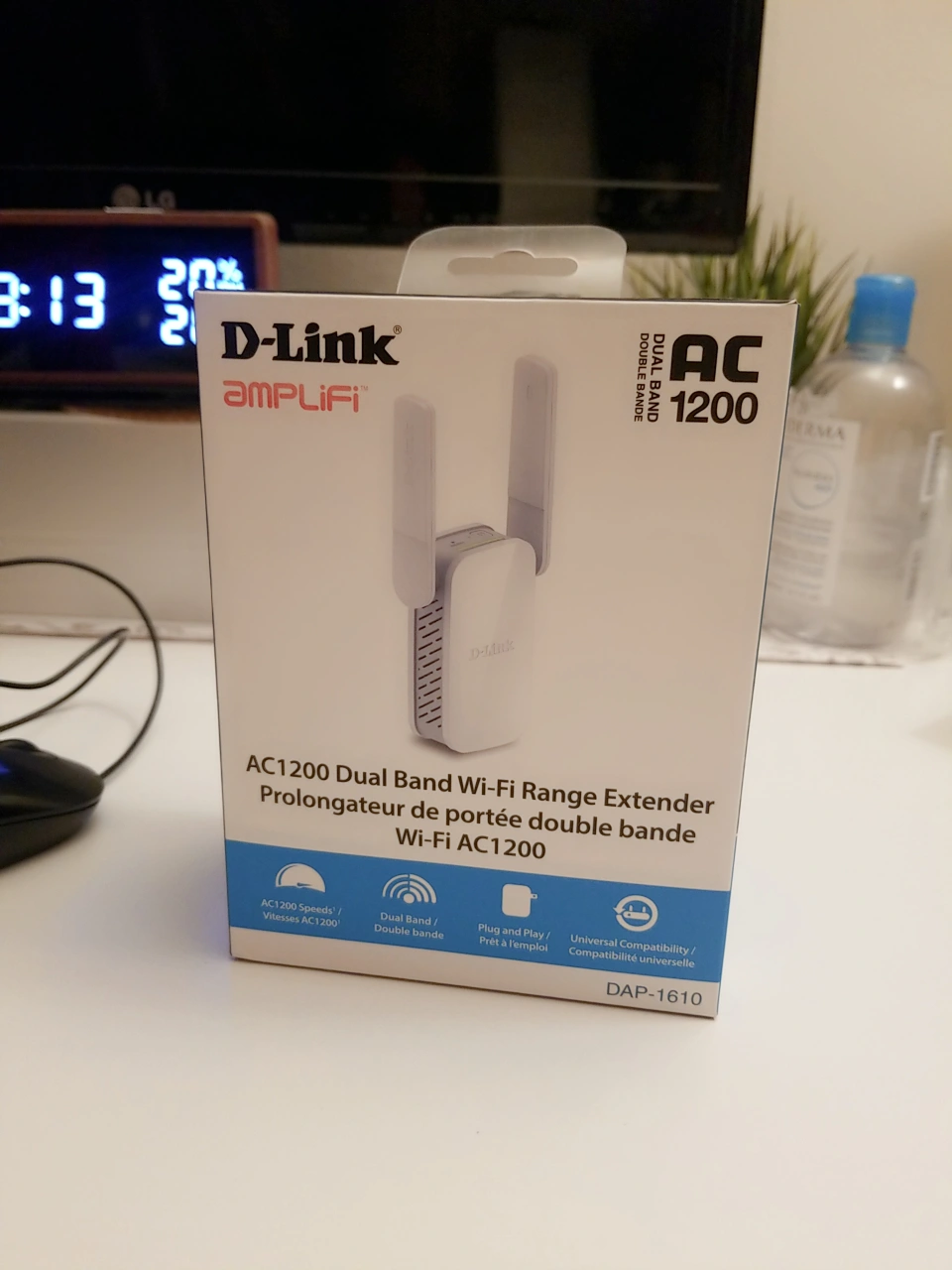 Dual band Wi-Fi range extender, AC1200 speeds, plug and play, universal compatibility.