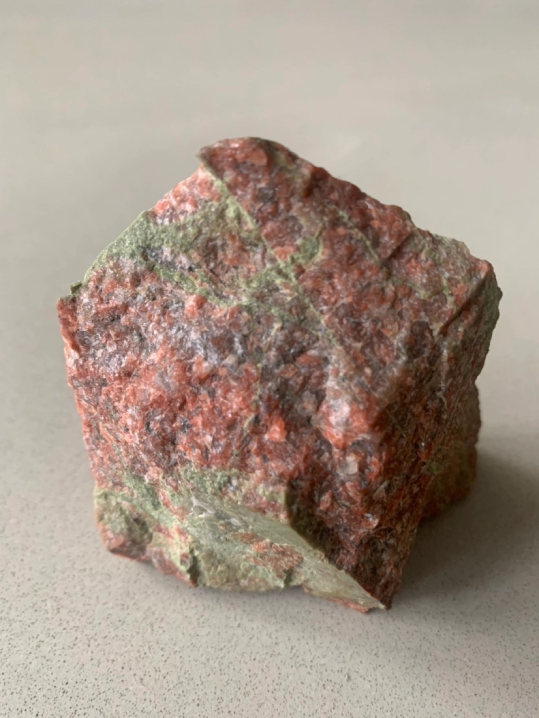 Naturally mined unpolished Unakite stone. 3 inches tall and 3 inches long.