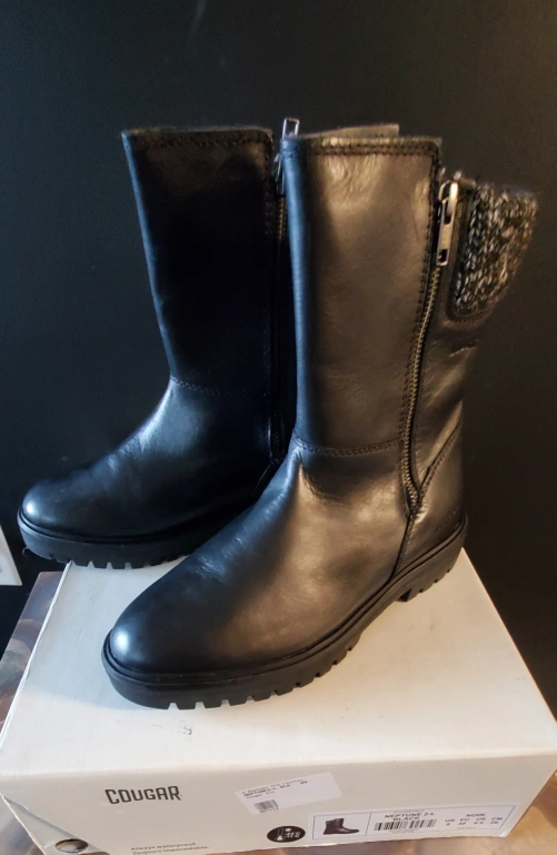 NEW Women's Cougar Black Leather Winter Boots [9, best fit 8]