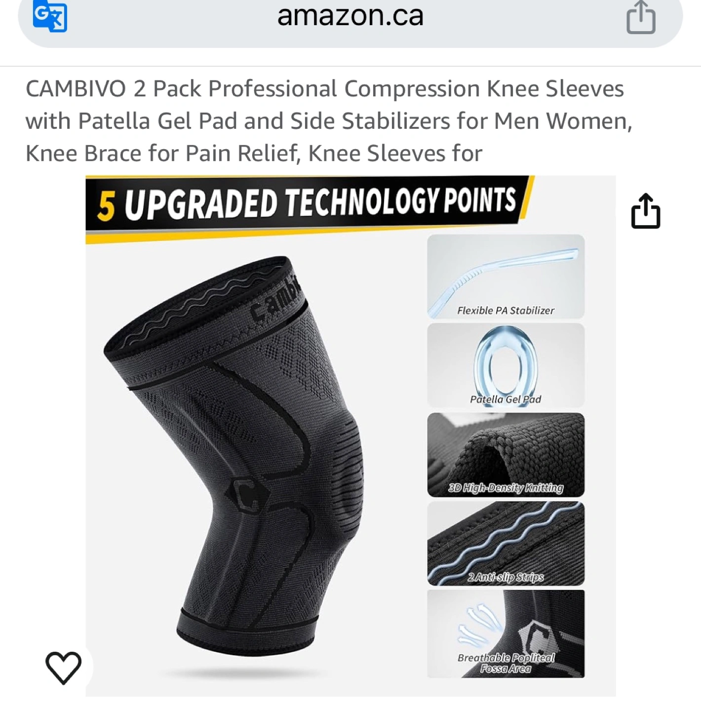 Professional compression knee sleeves with patella gel pad and side stabilizers. For men and women. Knee brace for pain relief. Pickup from Brampton or Lawrence/Weston area