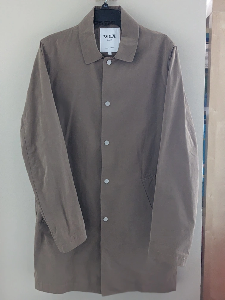 Our bestselling and signature style just received a make-over! Say hello to the Waxed Navarino 2.0, boasting new shower-proof, harder-to-crease cotton and rattle-free silver snaps. The Waxed Navarino is where it all started, so you'll still find some of our favourite features, including the Japanese block print under the collar and its lightweight unlined design serving up the essential top layer to any outfit. And in case you didn't know, The Navarino is named after a street in East London where you'll find our favourite pub, and where one of us kept forgetting our coat, quite fitting don't you think? Just like the Mac itself! Colour: Sand