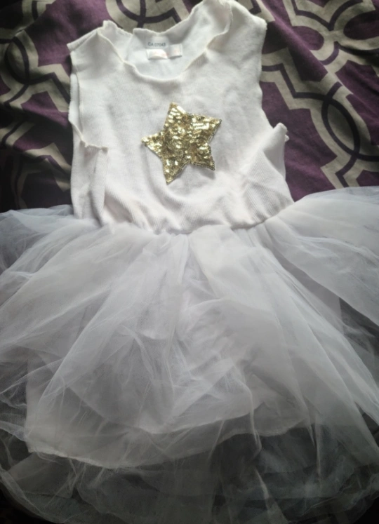 White sleeveless dress with a gold sequined star. Tutu skirt with a white bodice. Size 5T ♡Pick up only♡