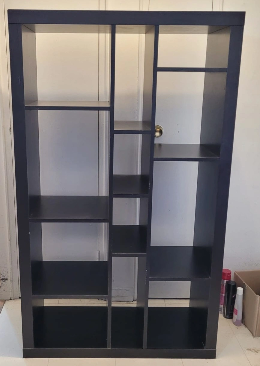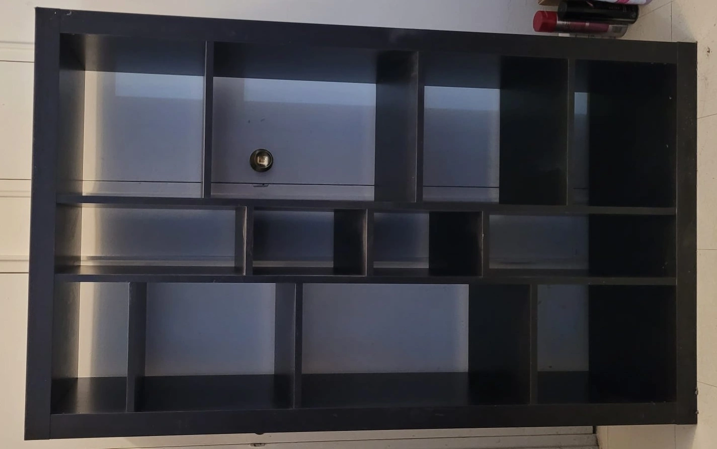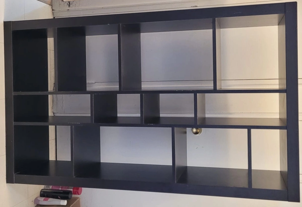 Pickup only in the Annex, no delivery. Wooden black color TV Stand Media or Decorations Display shelves. Base & one side has some scratches because moving otherwise this shelving system is in good condition. 149x39x89 CM