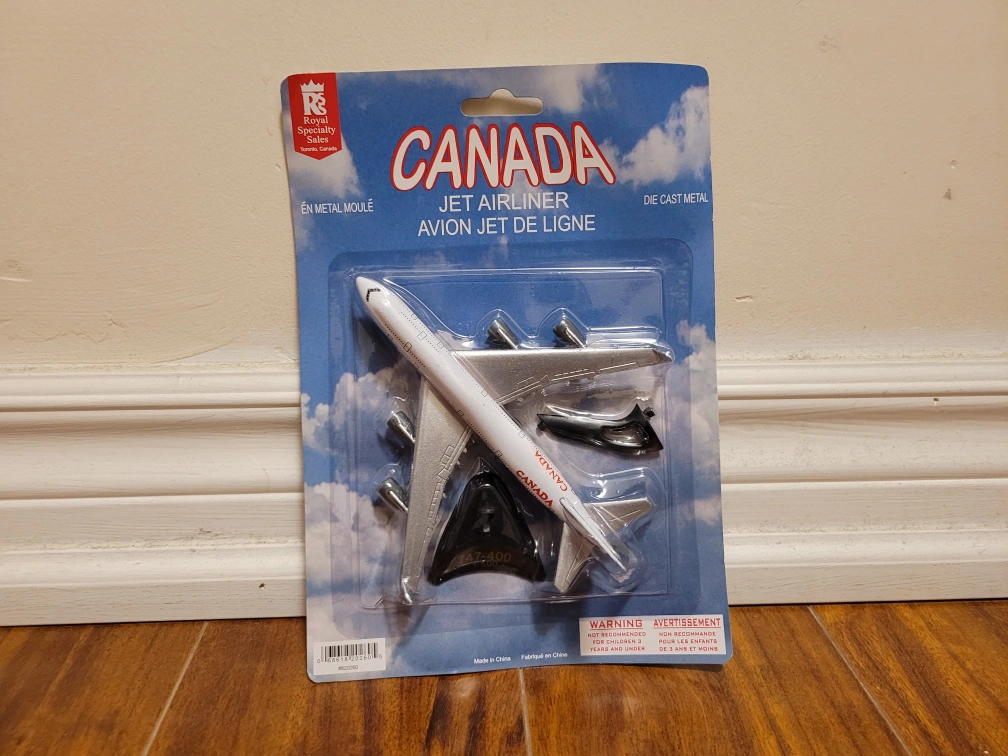 Die cast metal toy plane. Comes with a stand. Made in China.
