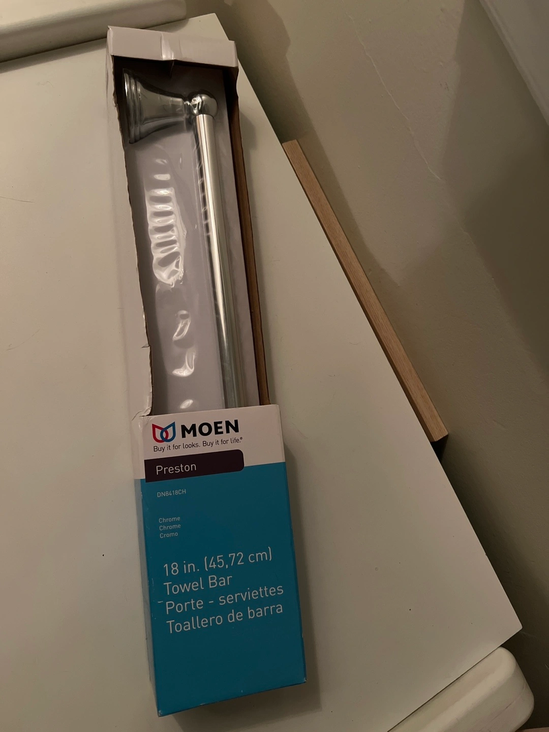 Chrome finish. 18 inch towel bar. New in box.