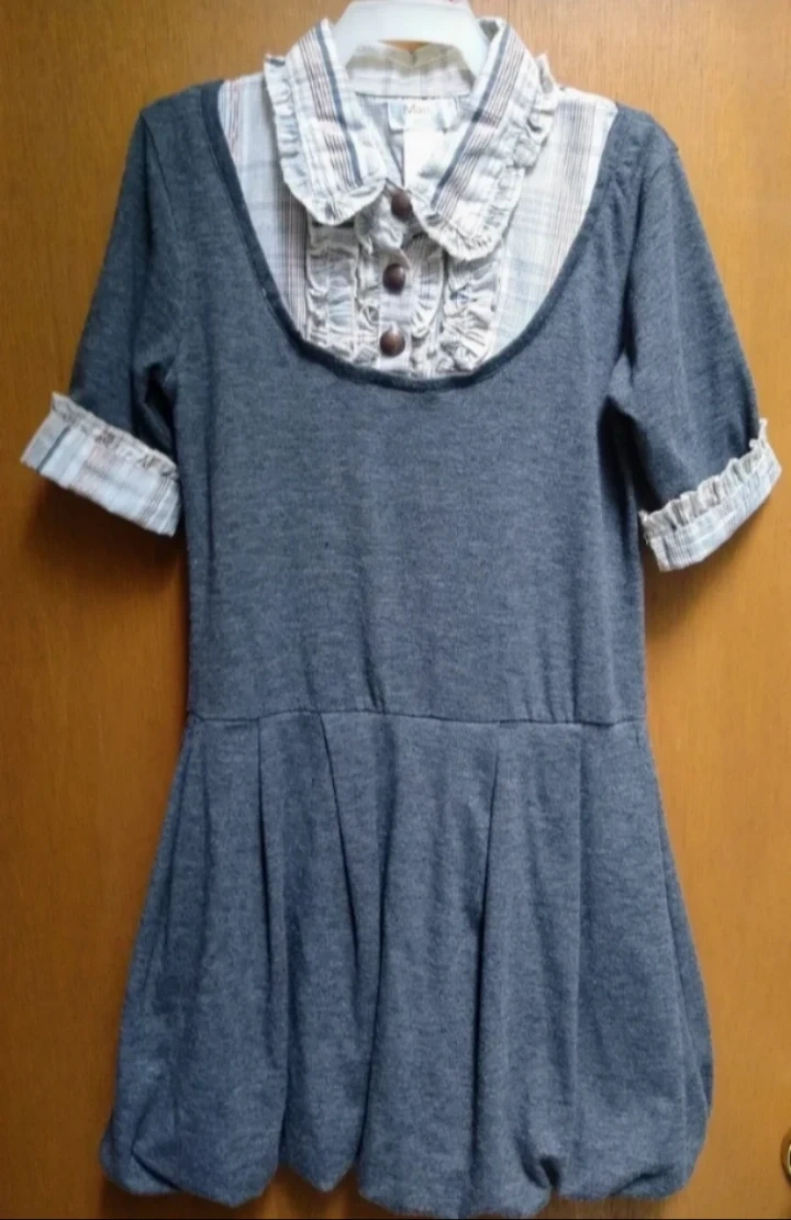 Girl's grey size 7 dress by Marc & Maddie. This dress features ruffled blouse fooler top attached to dress and balloon skirt bottom.