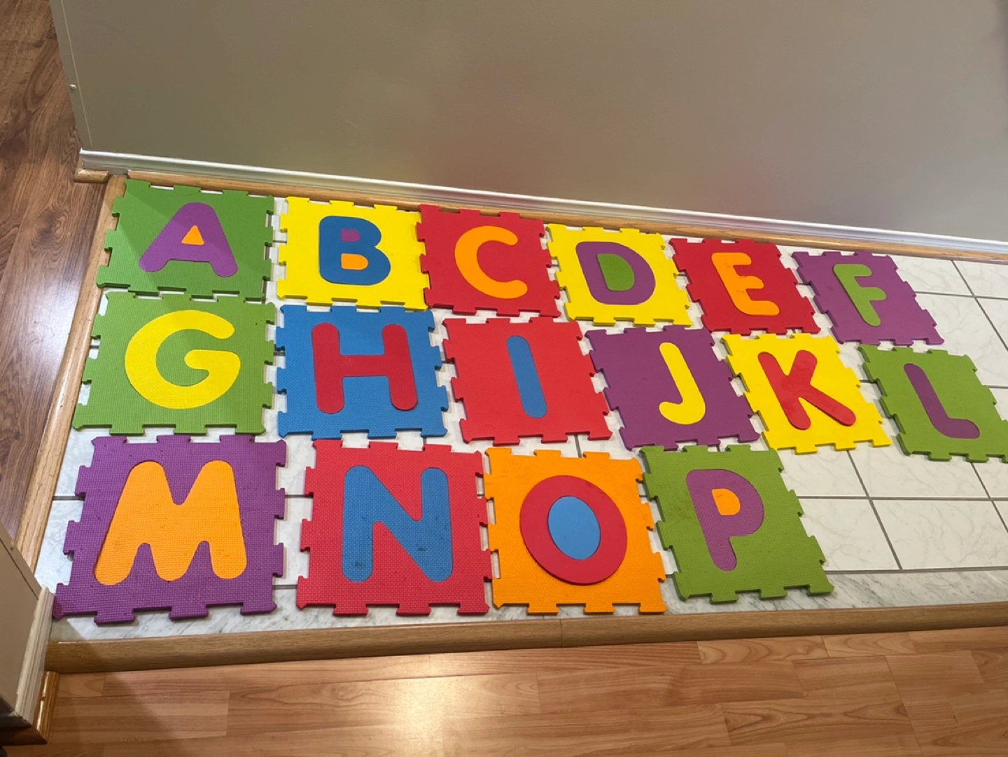Foam puzzle mat featuring the alphabet. 16 pieces. MISSING THE END MAKE ME AN OFFER