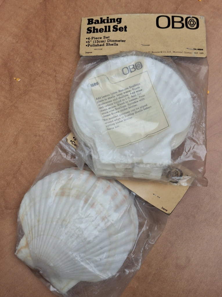8 scallop shells for baking. 13 cm in diameter. Never been Used, still in original package. cash only, pick up at Fairview Mall T&T Supermarket.