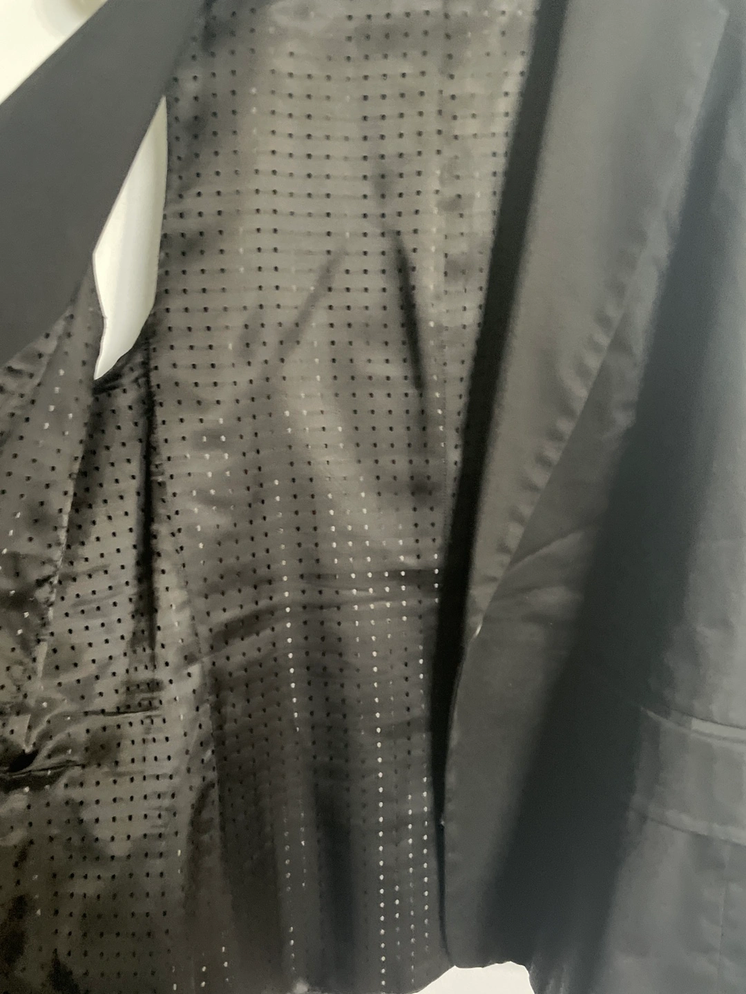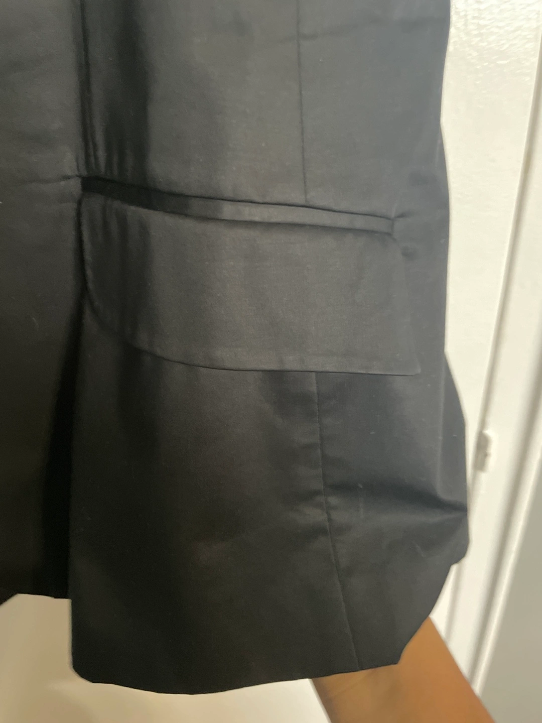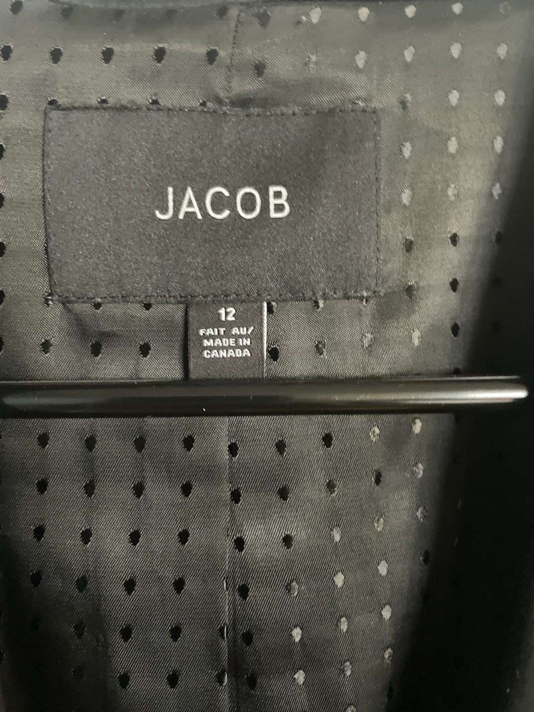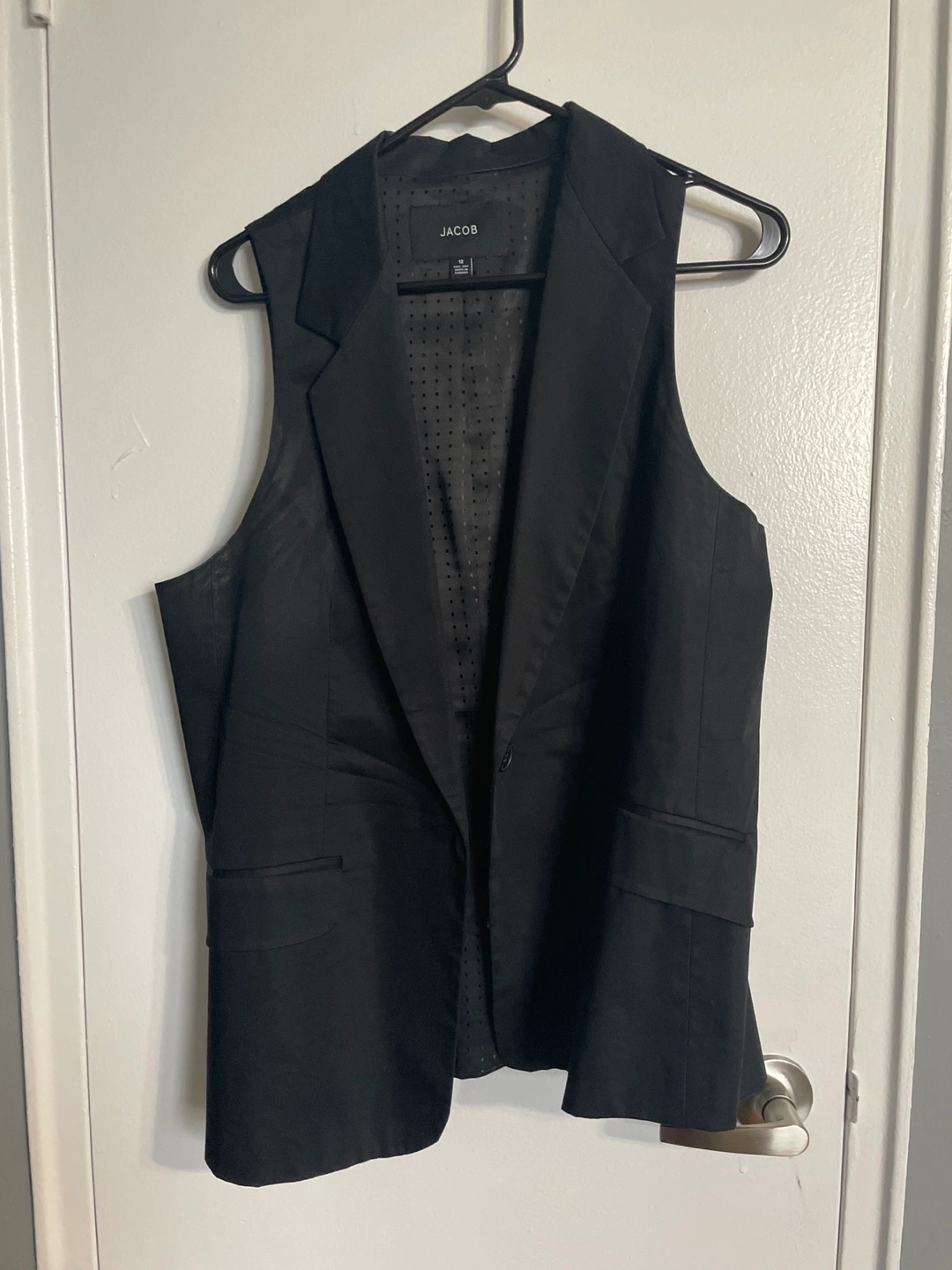 Black sleeveless blazer vest with a single button closure. Size 12. Made in Canada. No pets no smoky