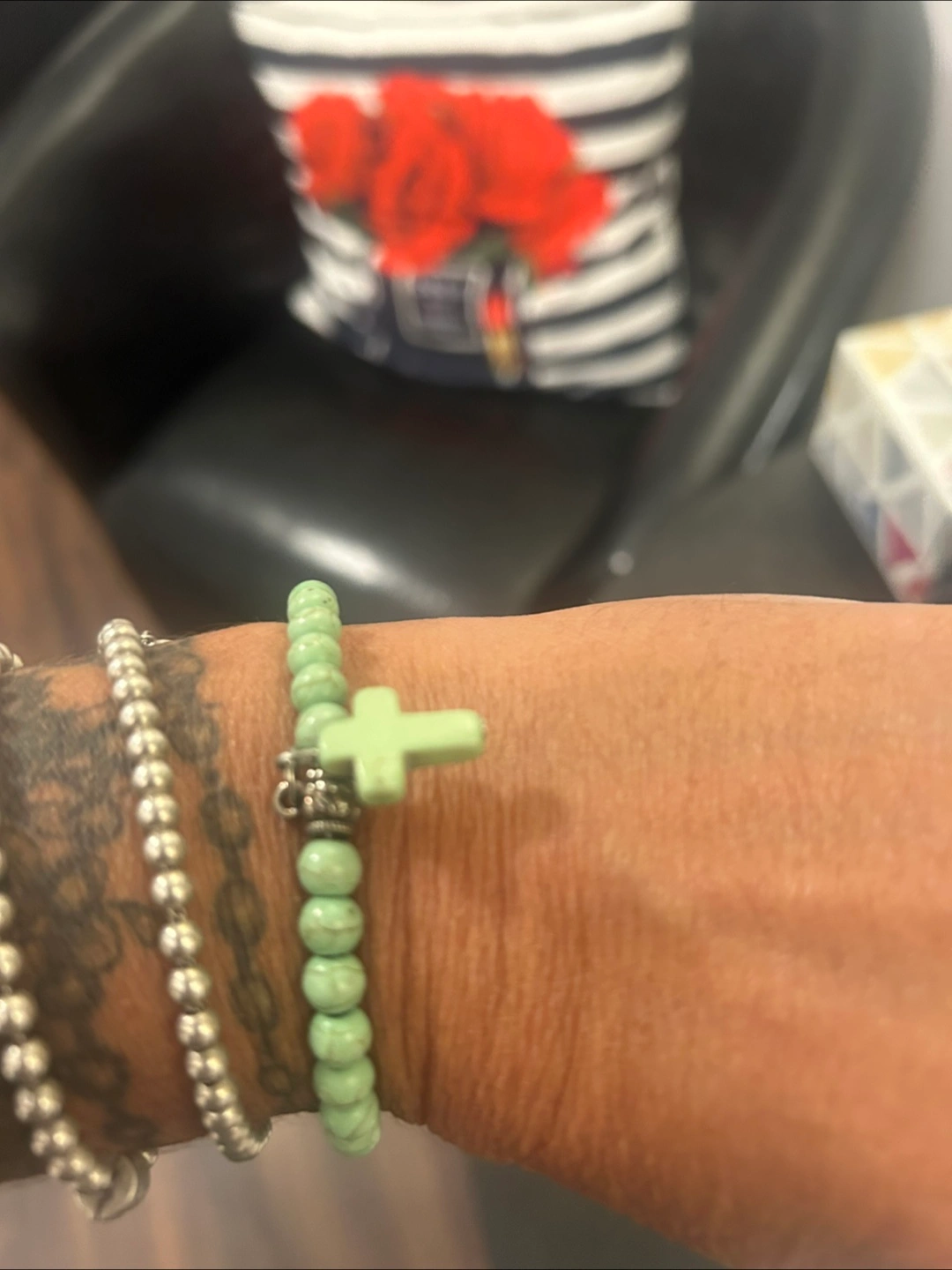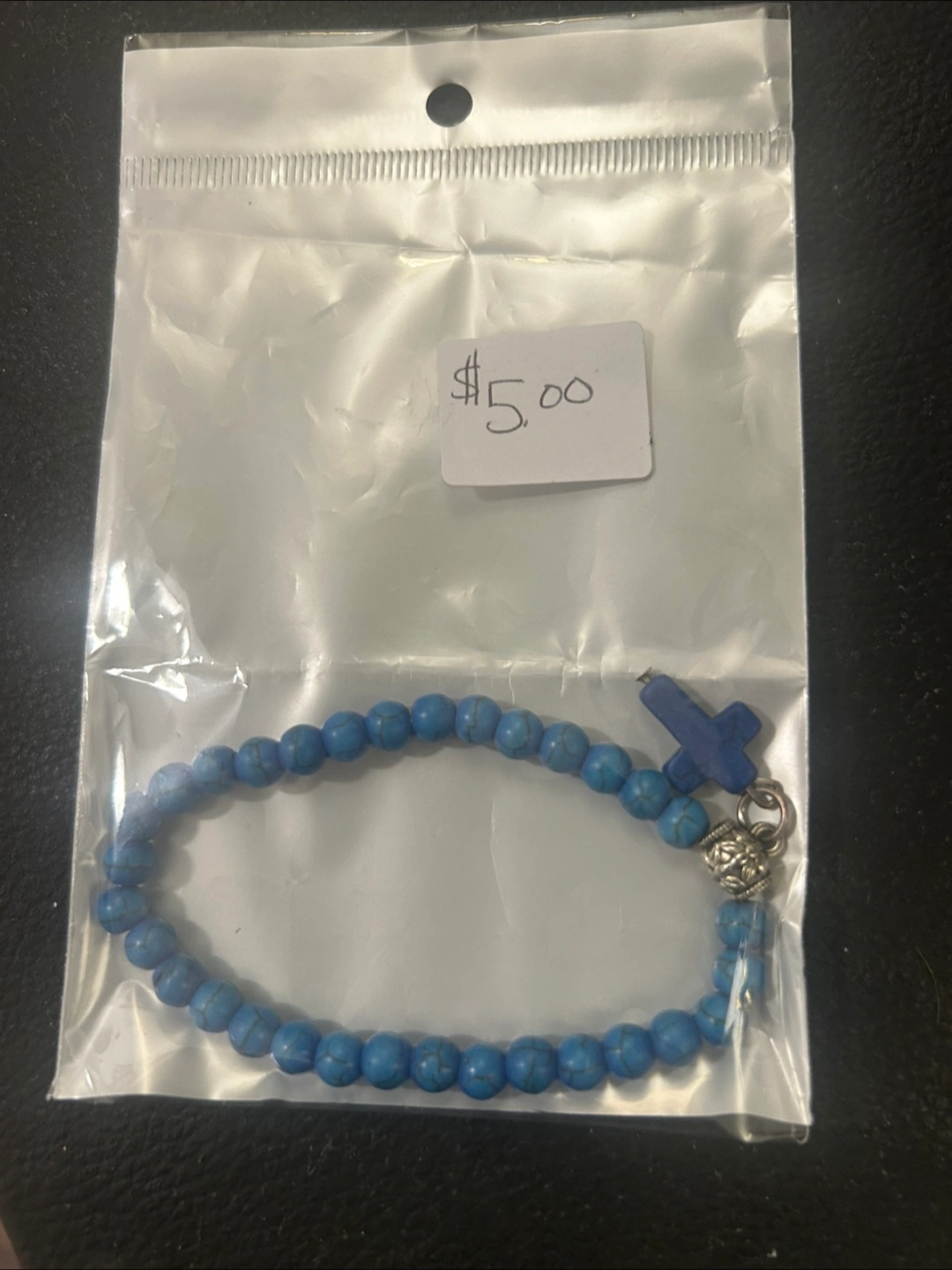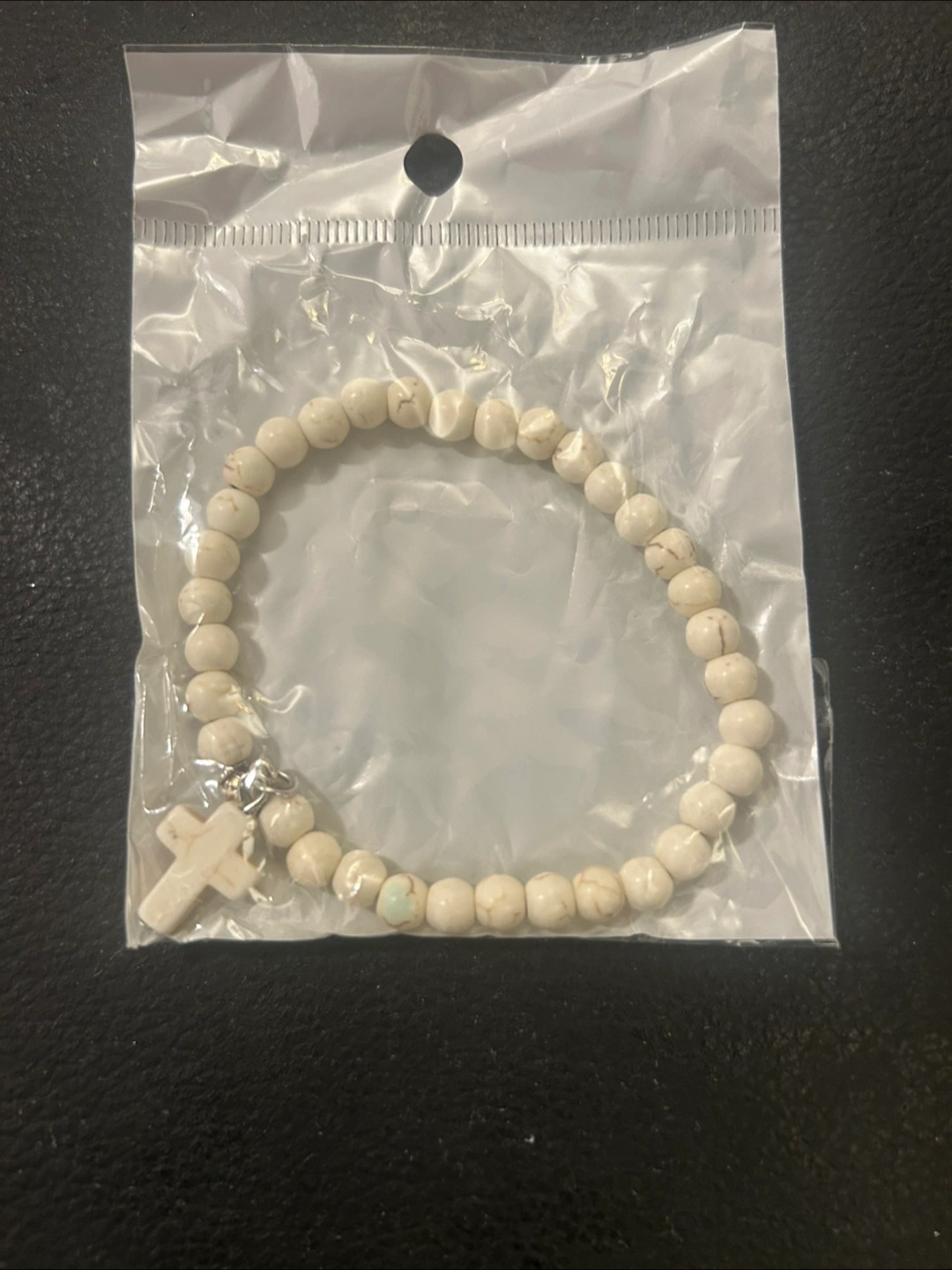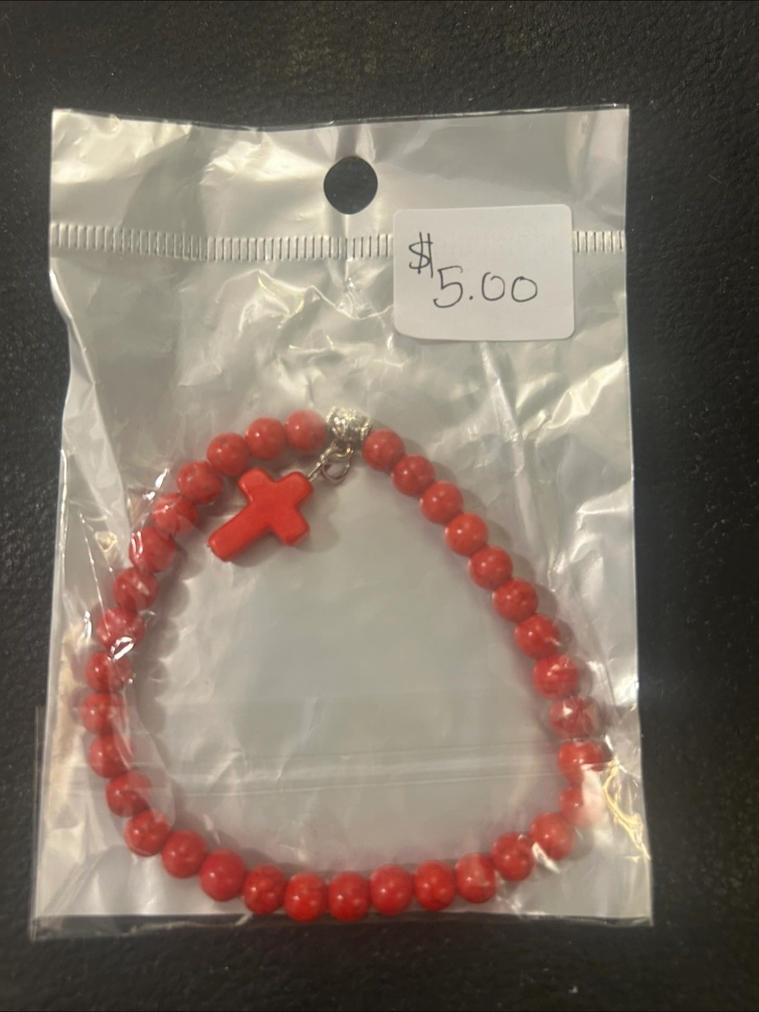 Beaded bracelet with cross charm. Multiple colours available. Perfect for layering.