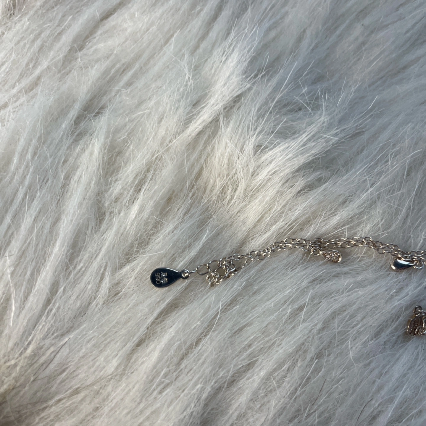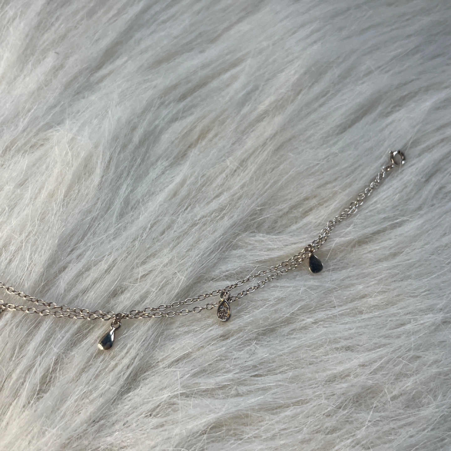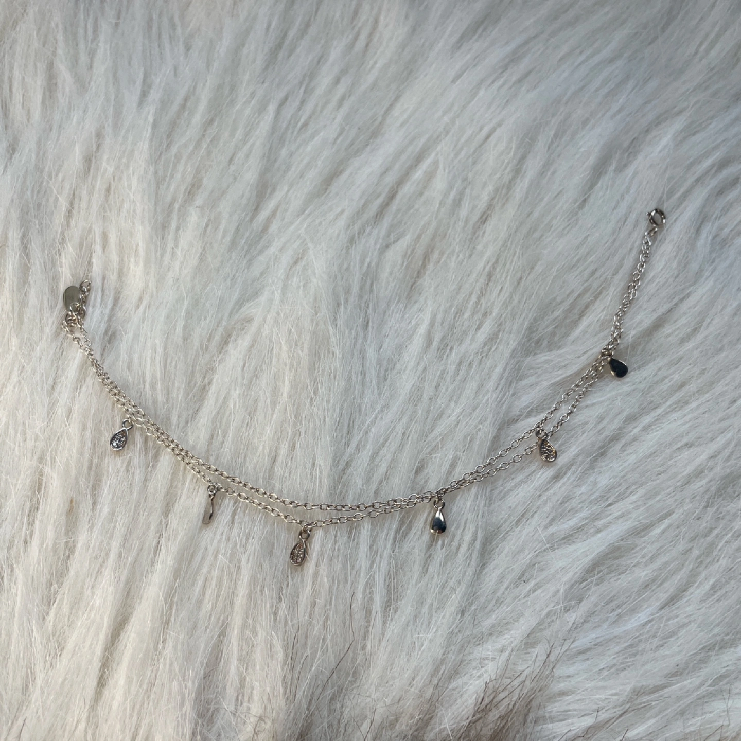 Double chain anklet with teardrop charms. Silver toned. 925 silver