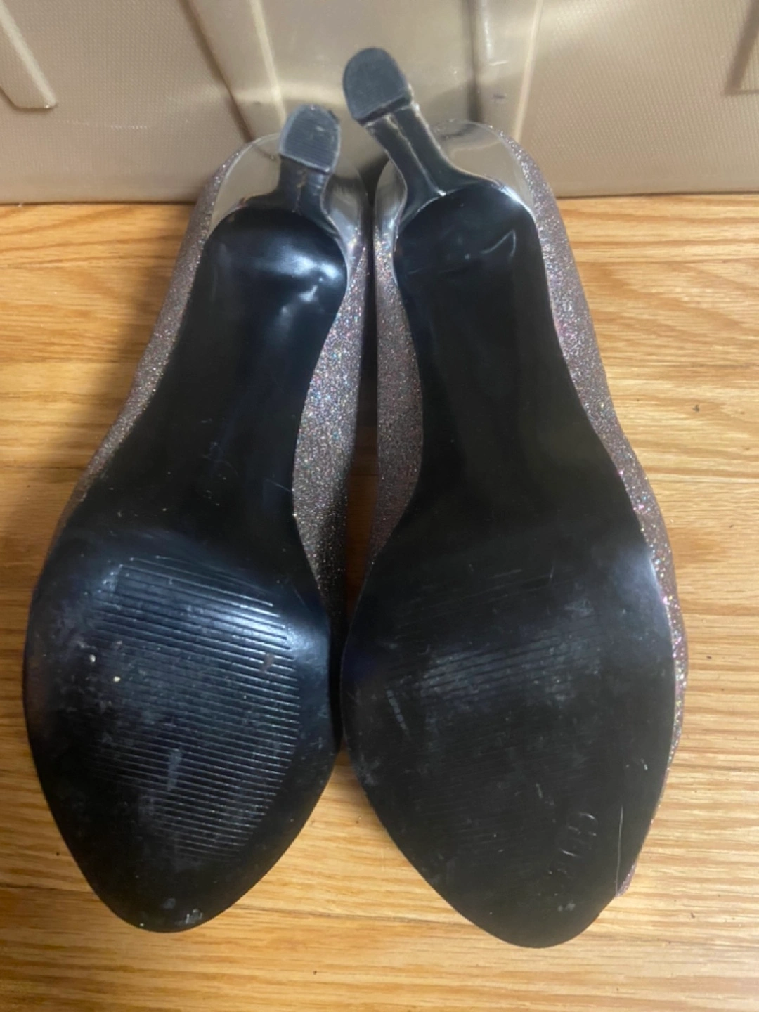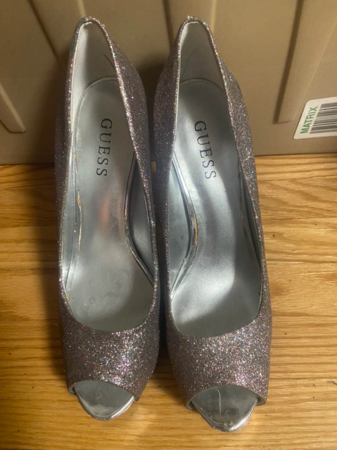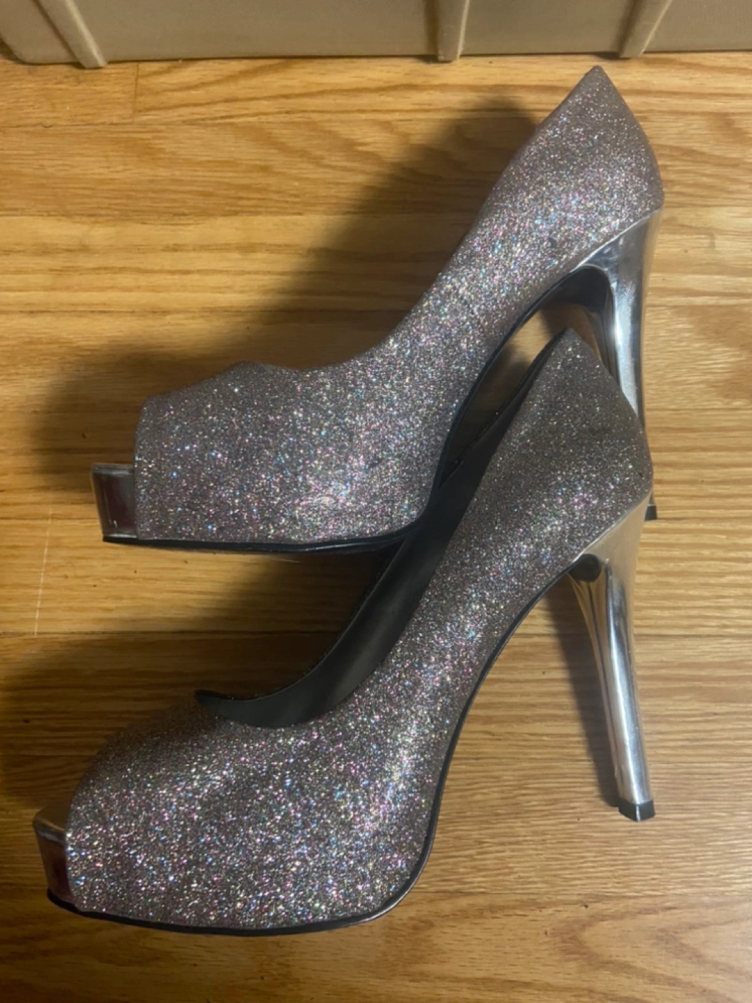 Silver glitter peep toe heels. High heels. Size 7.5.