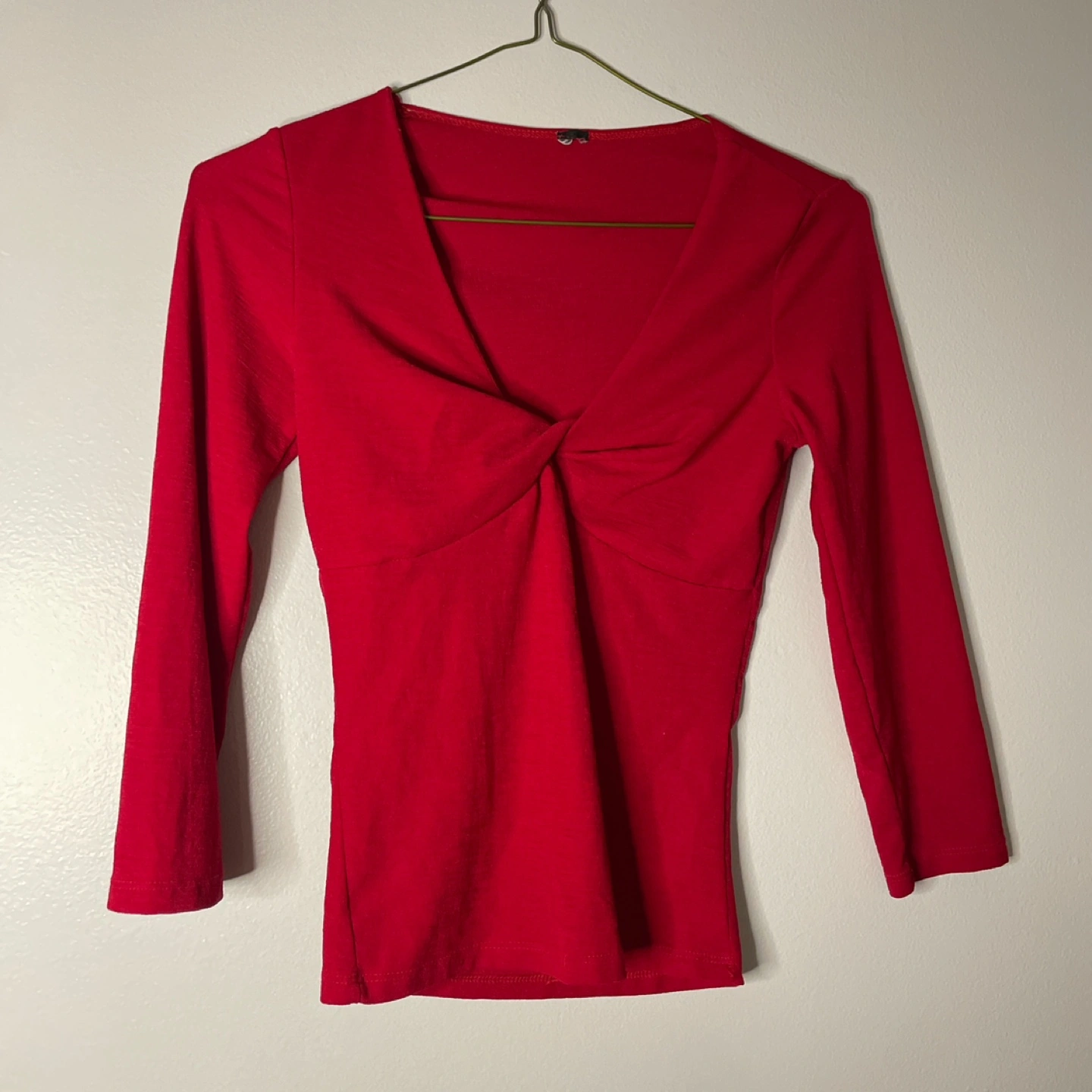 Red long sleeve top with twist detail at the front. V-neck. Size xs Barely worn