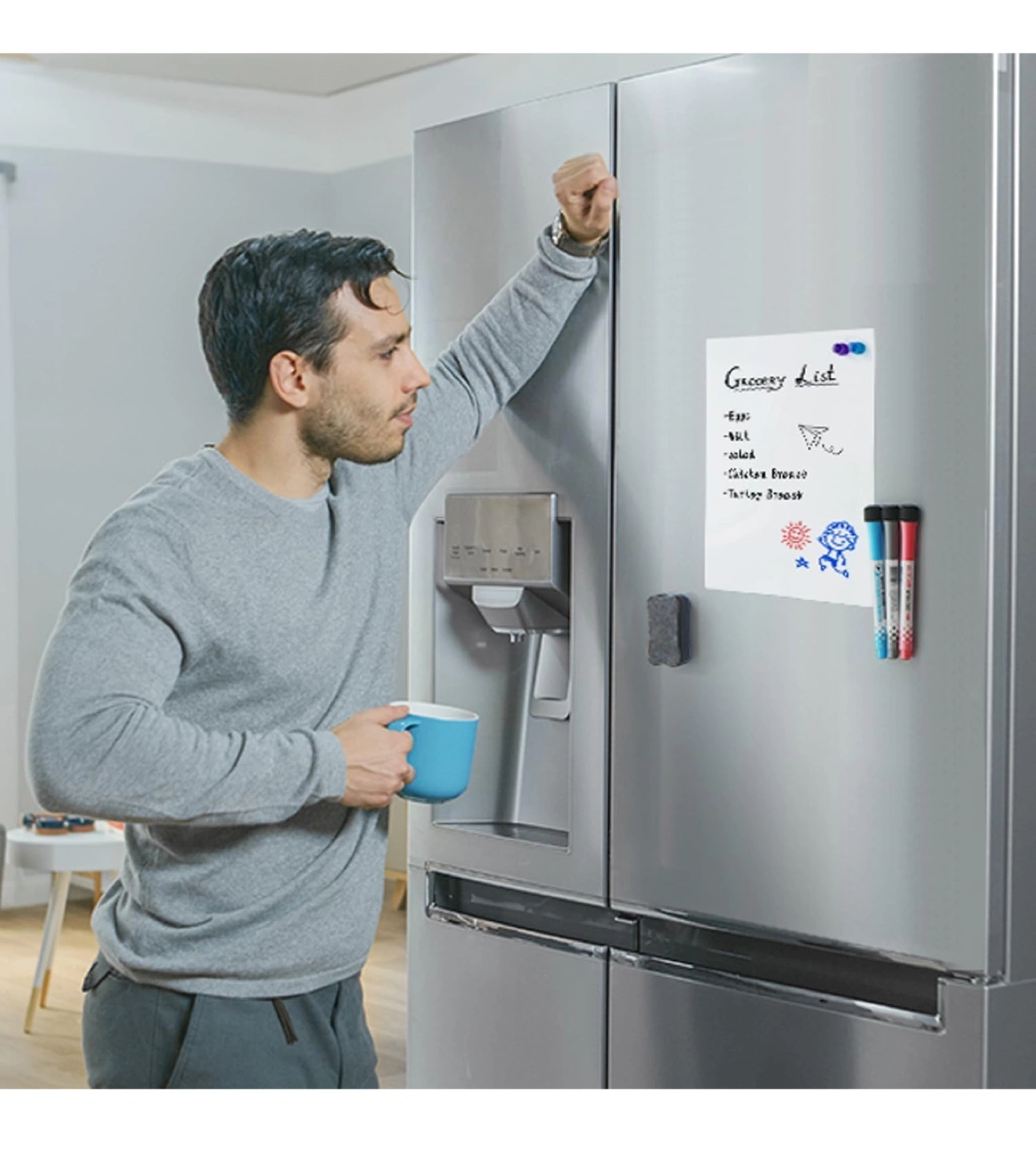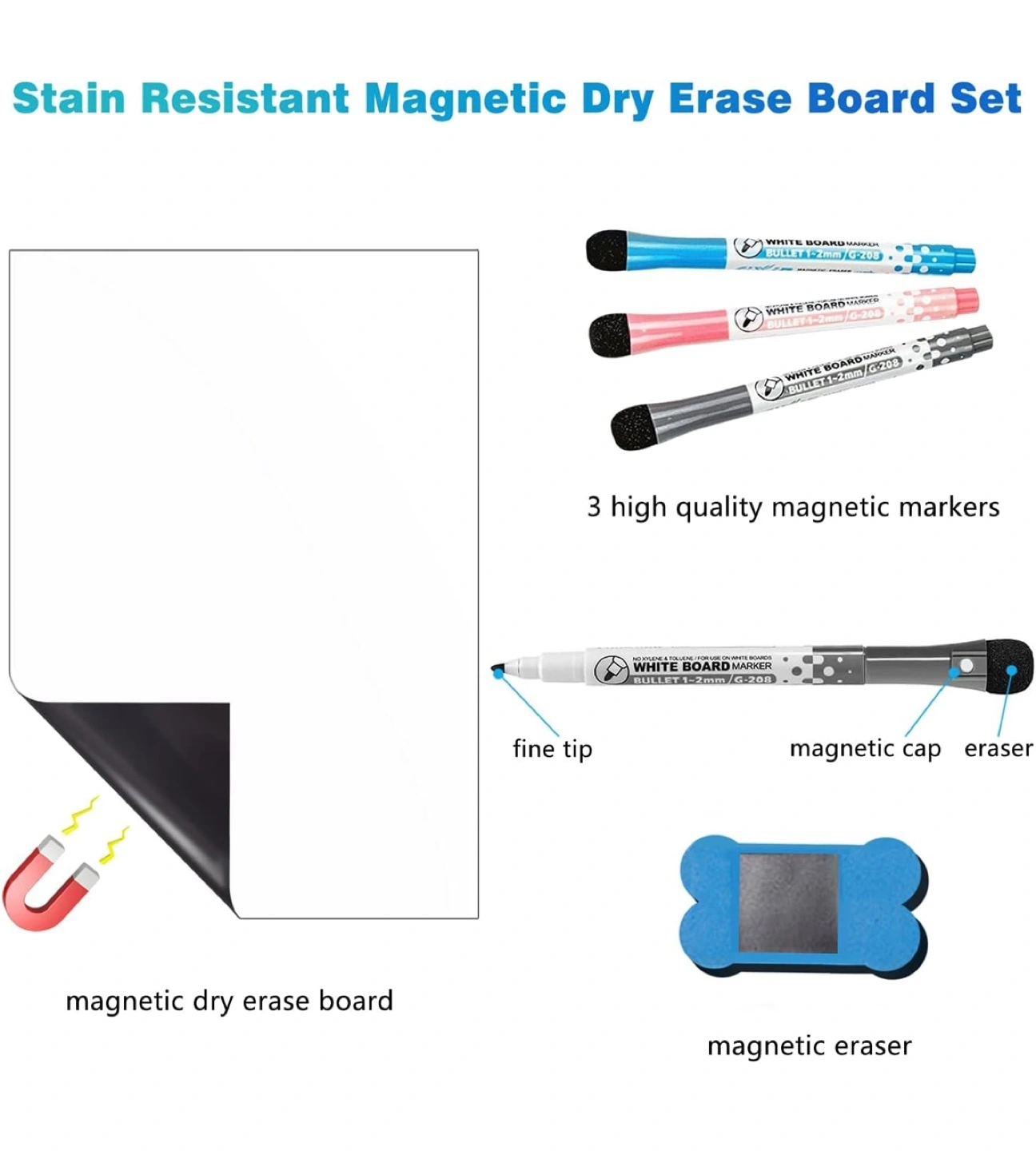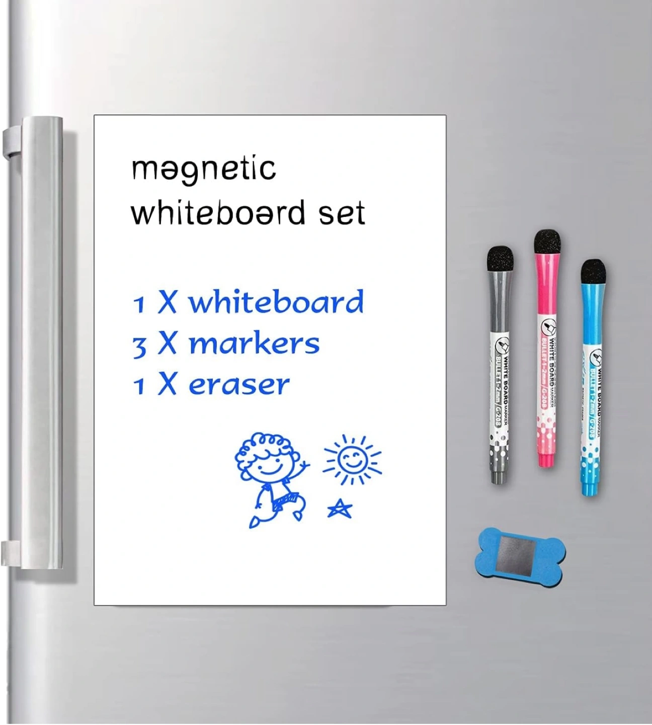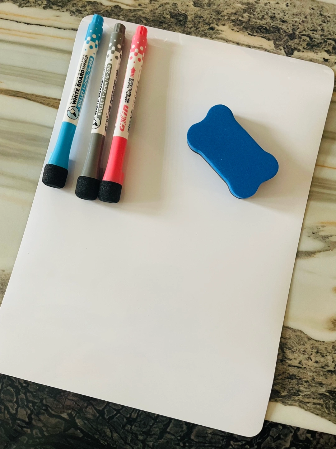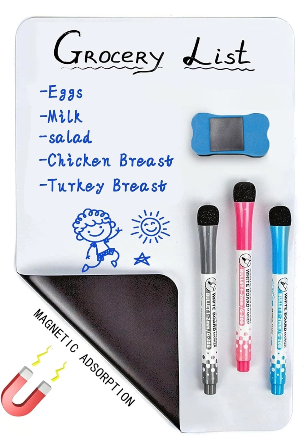 Magnetic Dry Erase Whiteboard for Fridge – Compact and Versatile Perfect for Home, Office, Kitchen, and Shopping Lists 12” x 8” Size: 12” x 8” Material: upgraded PET Key Features: • Enhanced with new stain-resistant technology for a clean, long-lasting surface. • Easy to Install: Equipped with a magnetic backing to easily attach to fridges or other magnetic surfaces. • Smooth Writing Surface: Ensures effortless writing and erasing without stains or ghosting. • Multipurpose Use: Great for meal planning, task management, shopping lists, and office notices. What’s Included: • 1 Dry Erase Whiteboard • 1 Eraser for quick and easy cleaning • 3 Dry Erase Markers (Black, Blue, Red) Ideal for: • Organizing tasks at home or in the office • Writing grocery or shopping lists in the kitchen • Displaying reminders and notices Upgrade your space with this functional and easy-to-use magnetic whiteboard! *10 units available *Pickup Locations: Near Markham Road & 14th Avenue, Markham, or 500 Esna Park Dr, Markham. *Thank you for your interest in these items. Please also have a look at my other items on sale.