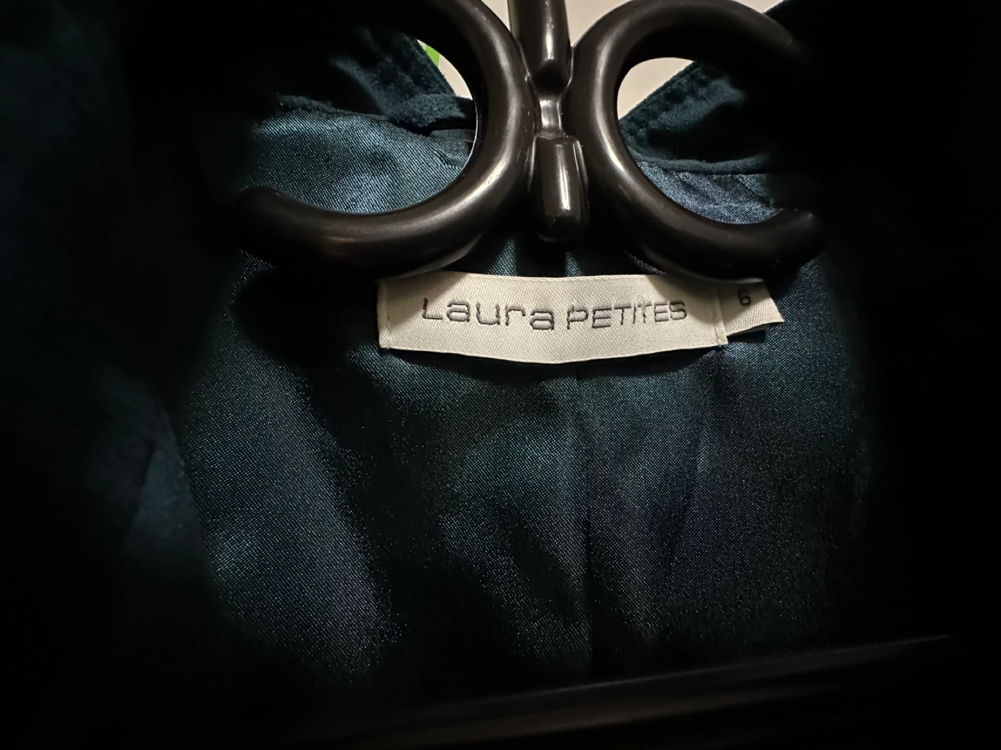 Green suede jacket. Size 6. Zipper closure with a decorative lock.