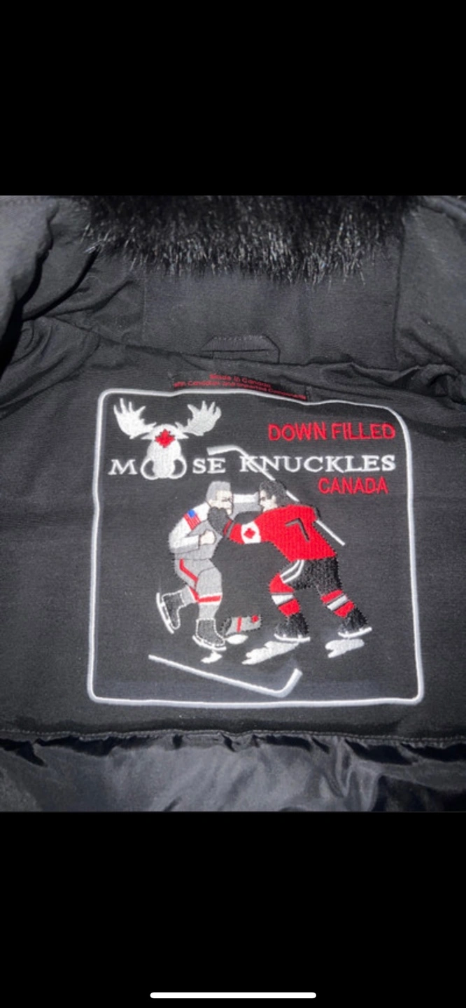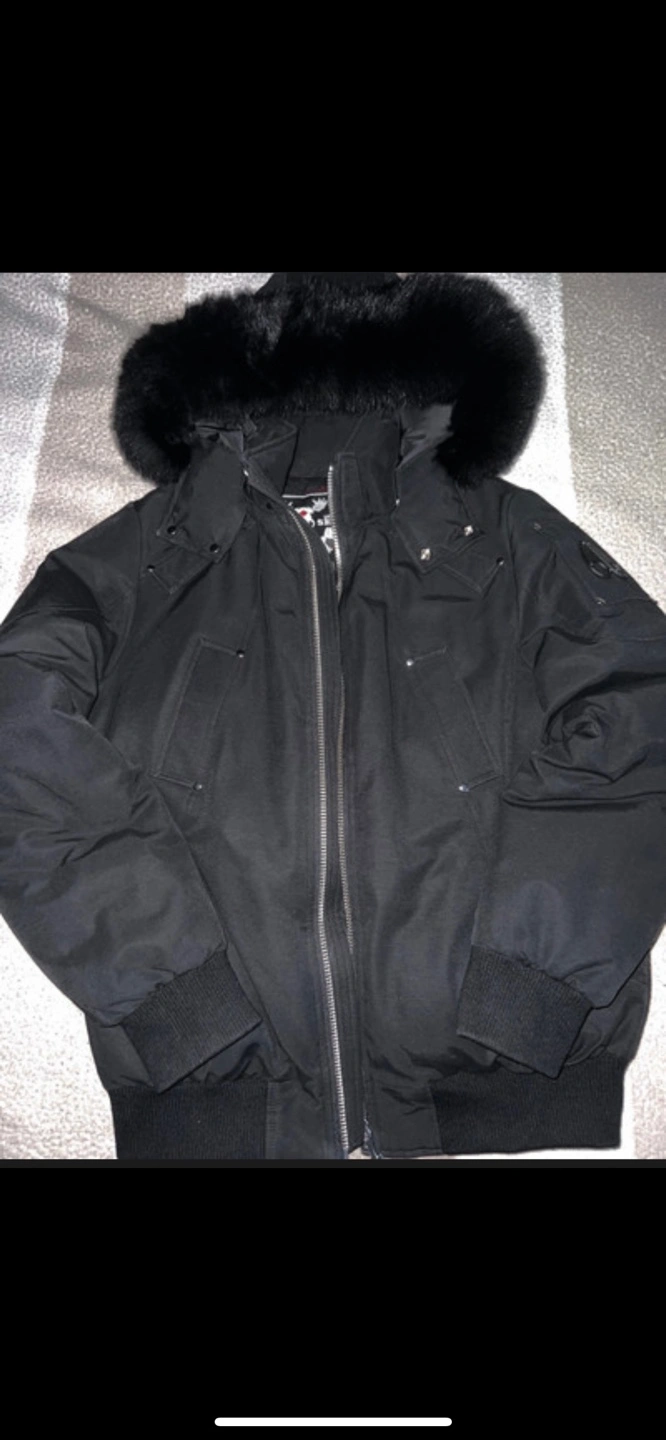 Like new Moose Knuckles Bomber Jacket black fur Size Large Purchased January, 2024