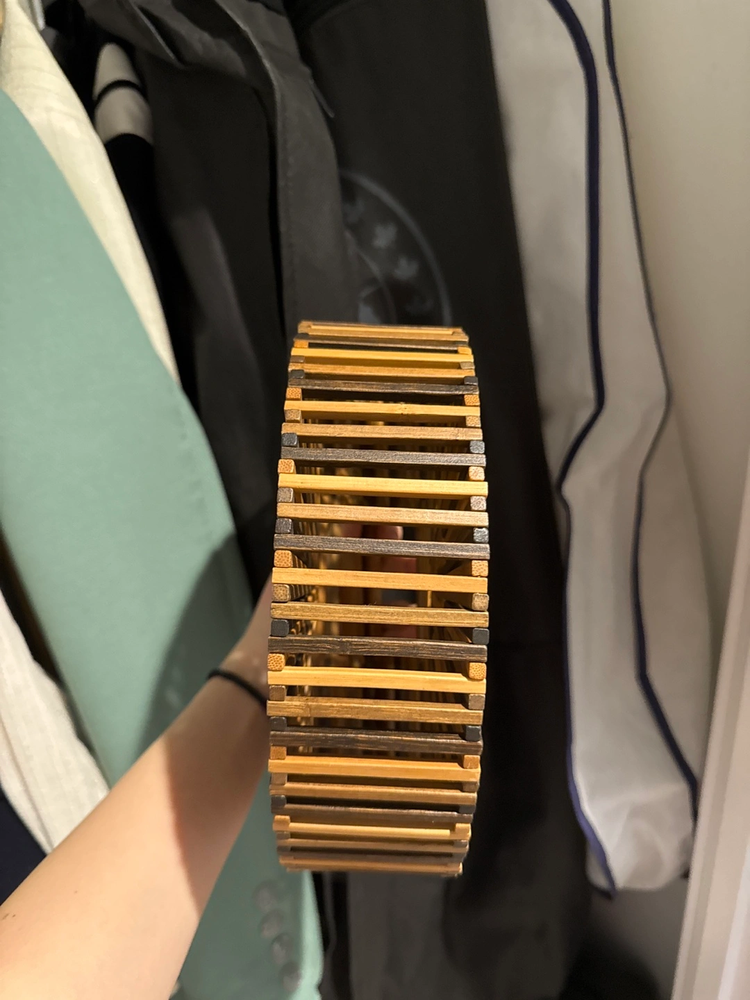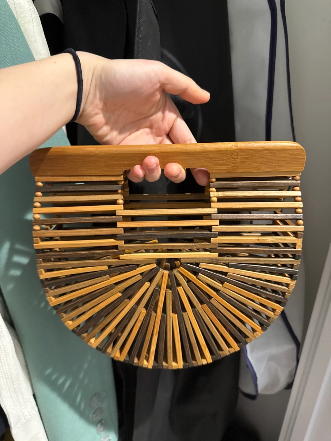 Wooden handbag with a top handle. Made from natural bamboo. Bought for over $600. Never Worn. Kept in storage for too long and it is ready to find a new home! Check out my other listings to get bundle discount! Feel free to send me reasonable offers!