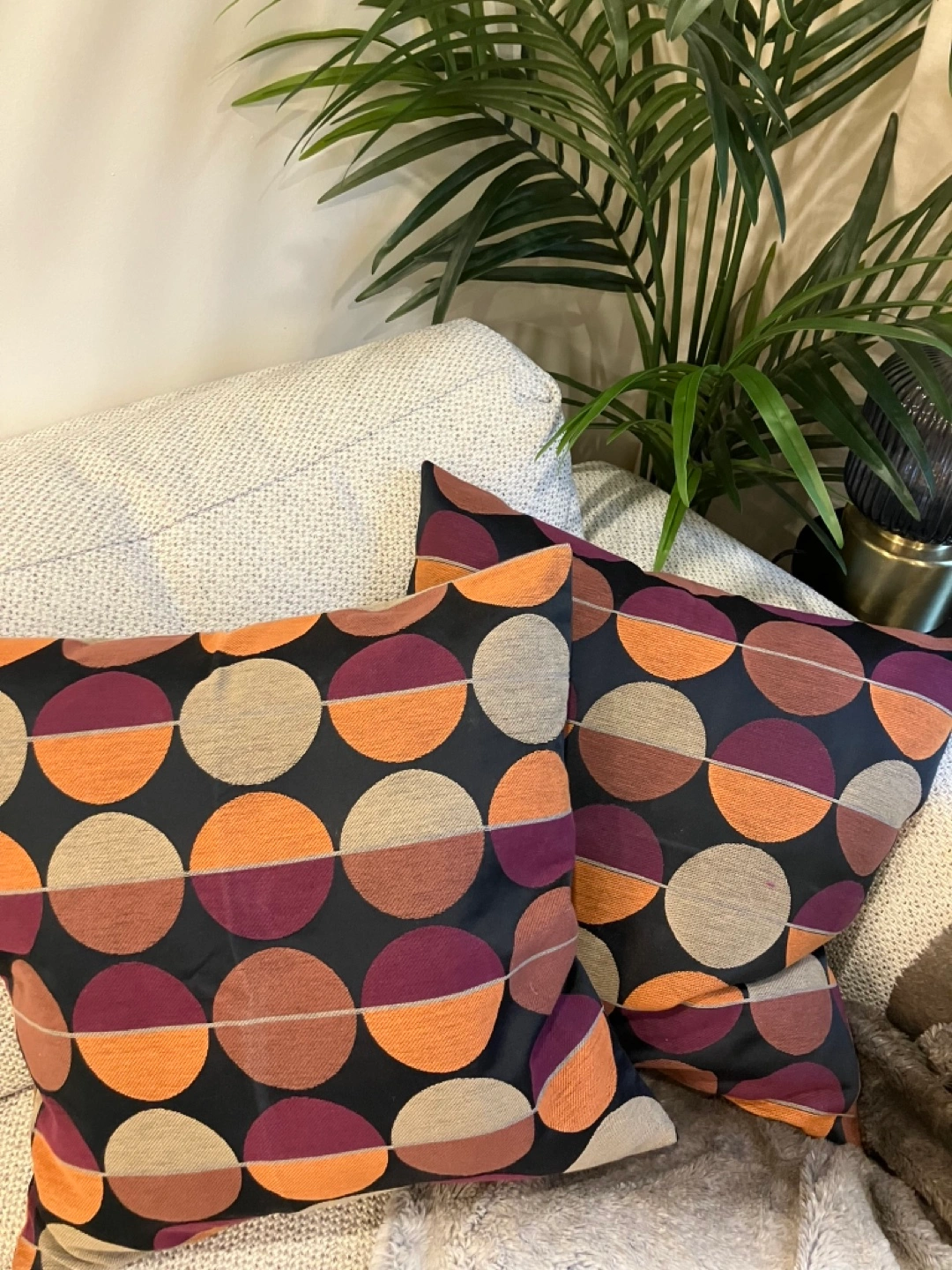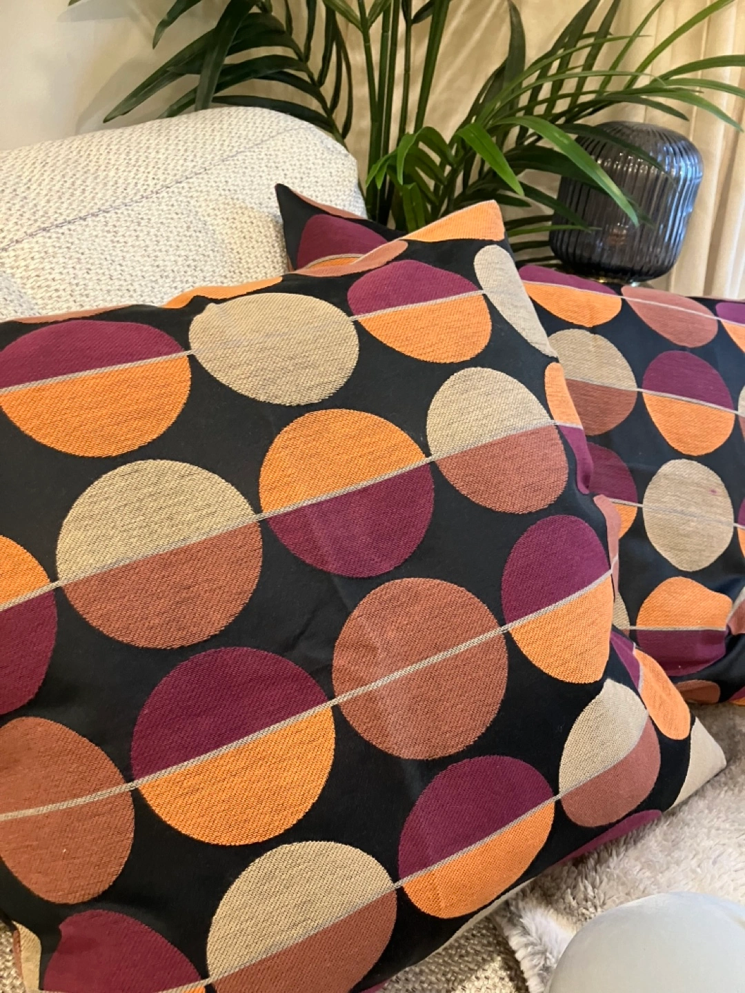 Includes pillow inserts!! 2 pillow cases and and pillow inserts. Perfect way to add colour to a bed or couch. Zipper makes for easy washing. Pattern has a nice threaded style to it giving the pillows texture. The colours are so deep and moody I was sorry I never used them when I pulled them out. EASY PORCH PICKUP AVAILABLE