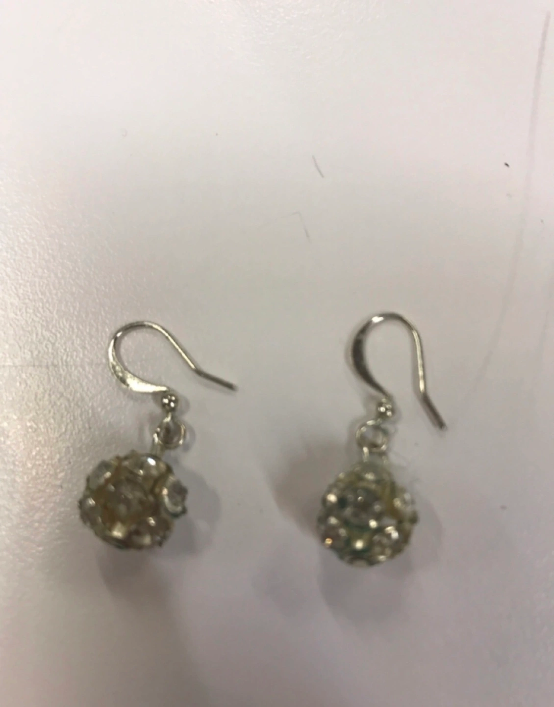 Silver dangle earrings with crystal embellishments.