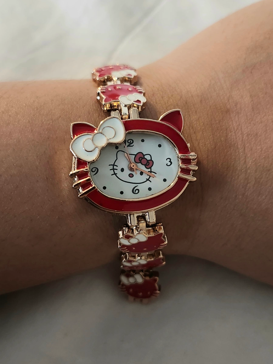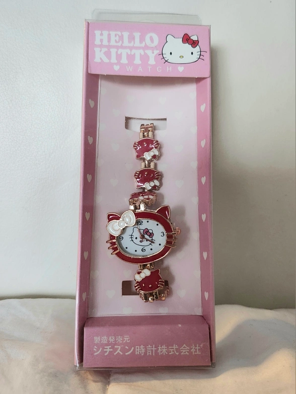 Red Hello Kitty watch with gold-toned accents. The band is made of metal links with Hello Kitty charms. * Selling all our collections with confidence. * Guaranteed all items posted are in very good working condition •• Payments upon meet up or pick up Pick up location : 36 Andrea Rd Ajax ON L1S3V7 Meet up location : Pickering Mall For more info, kindly feel free to DM me. love love love ♡♡♡