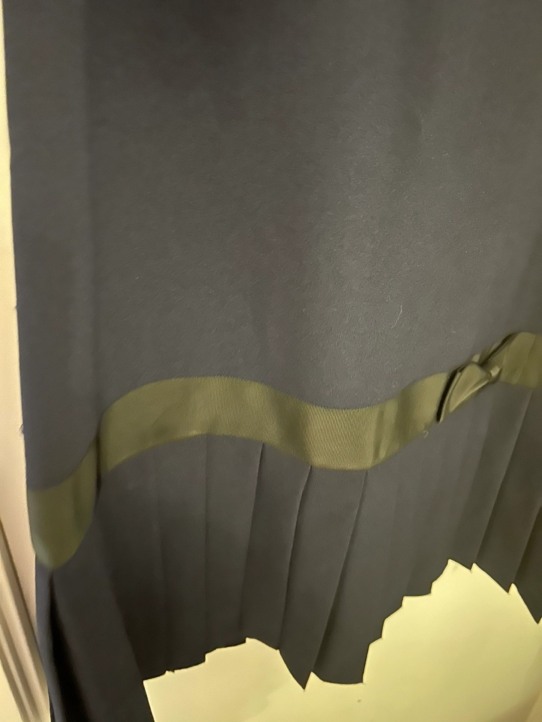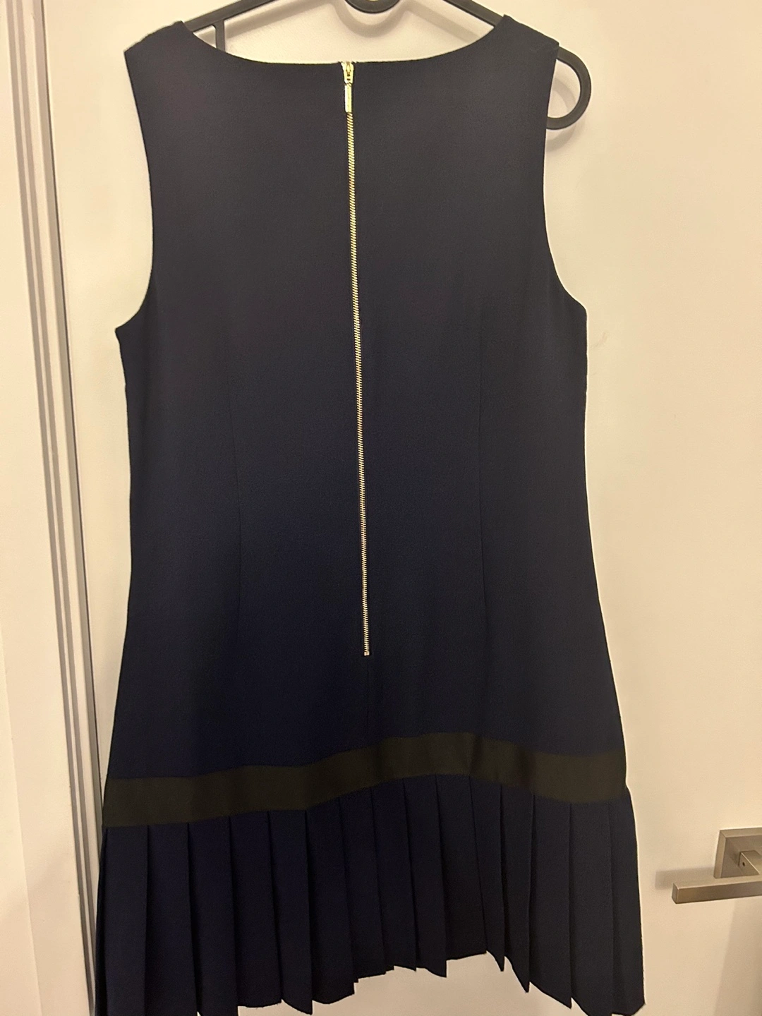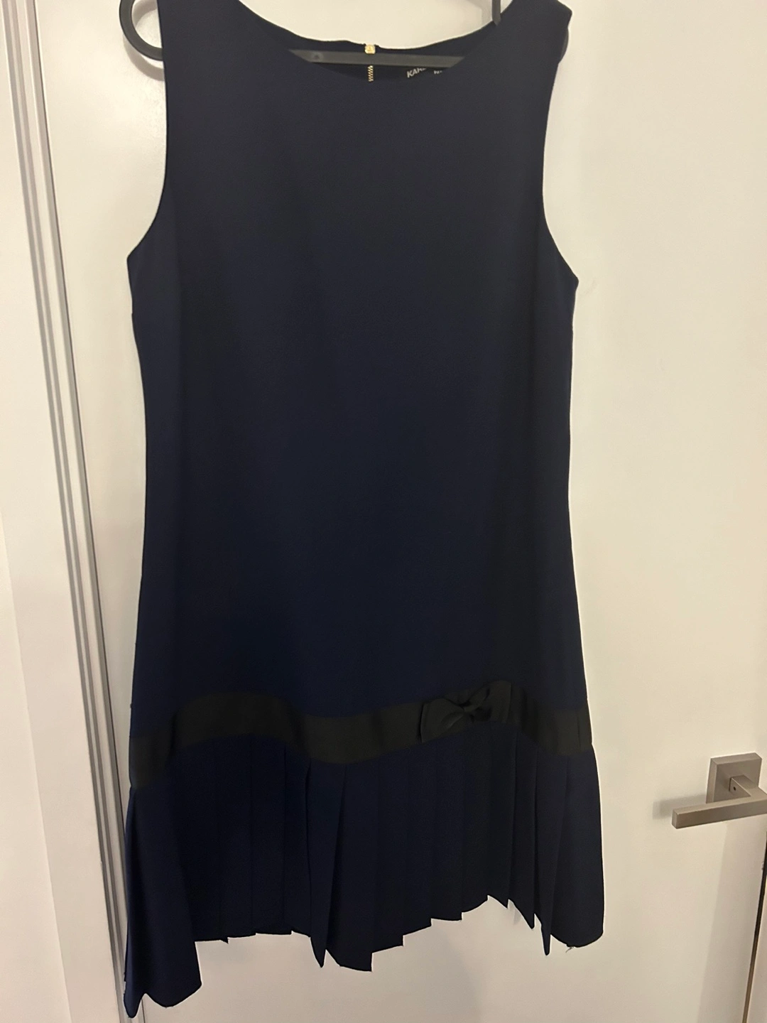Sleeveless navy dress with a black bow detail and a pleated skirt. Great for the holiday season! Check out my other listings! :)
