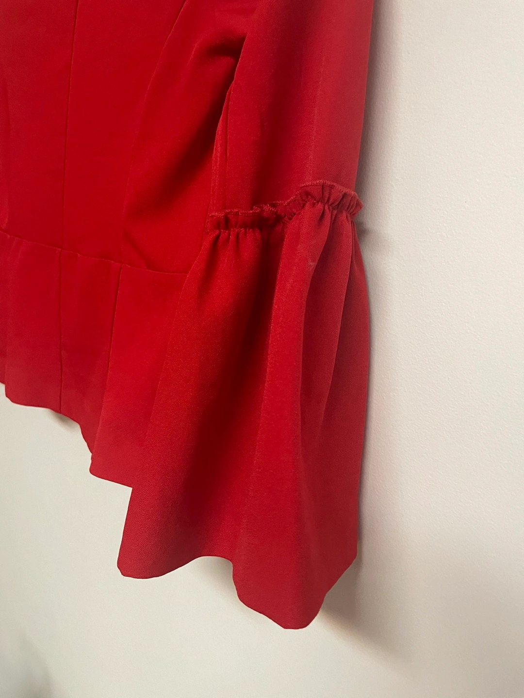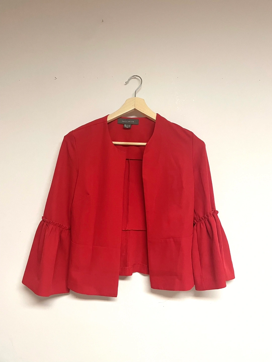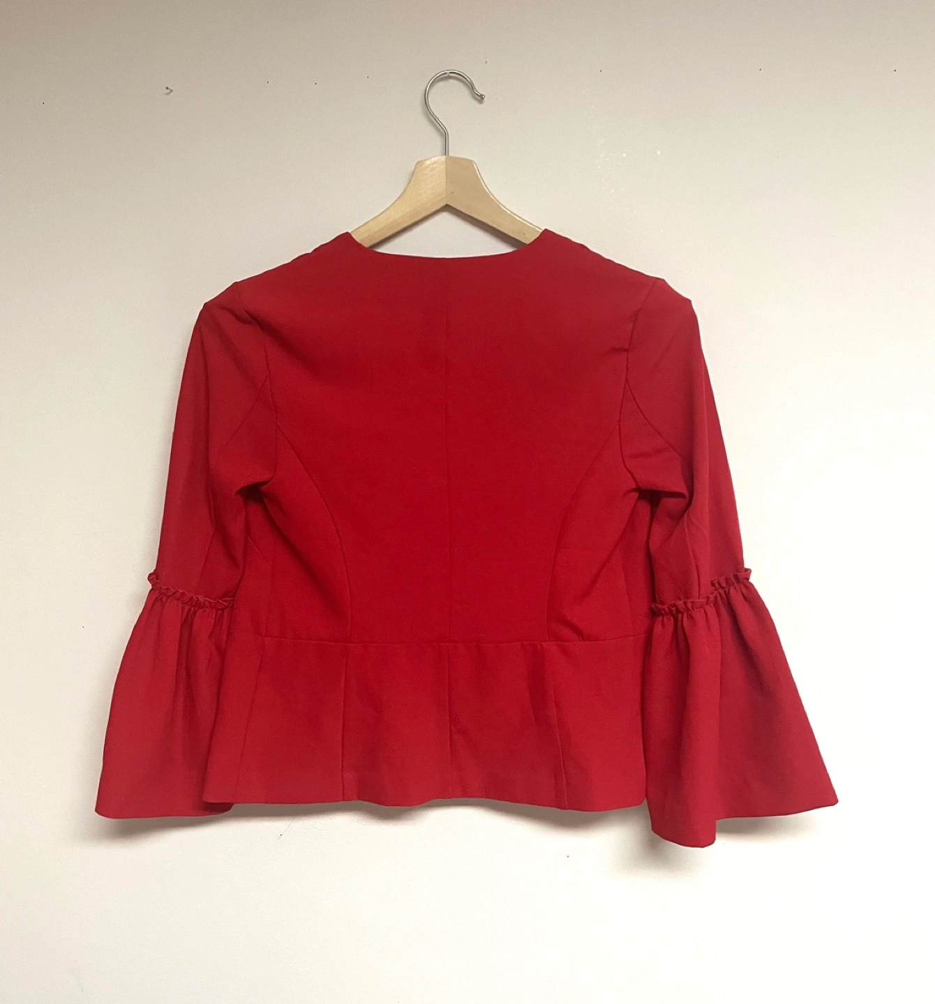 Red short blazer With statement sleeves Size XS 100% polyester Perfect for holidays Never worn No buttons Price is firm Cash only