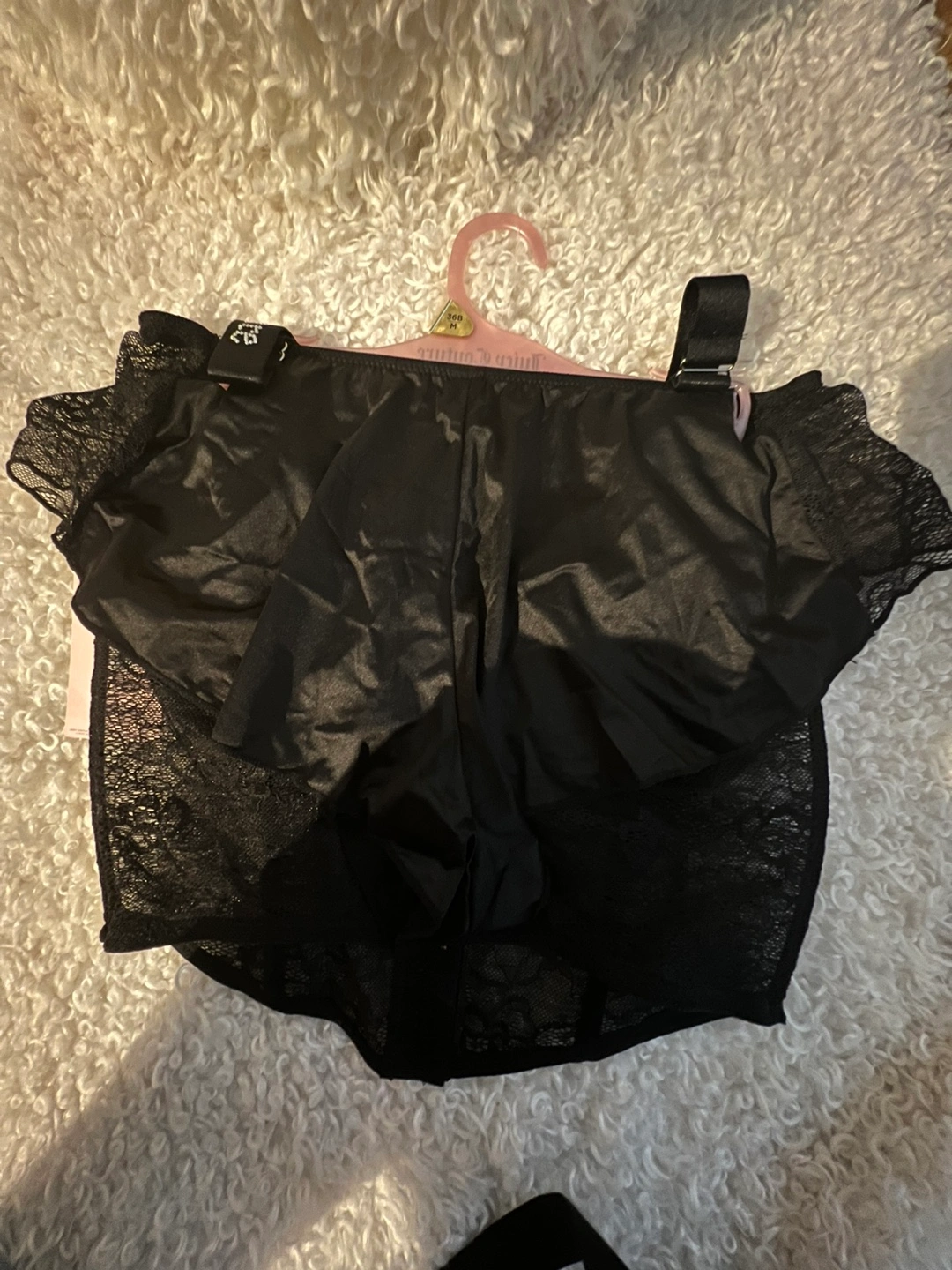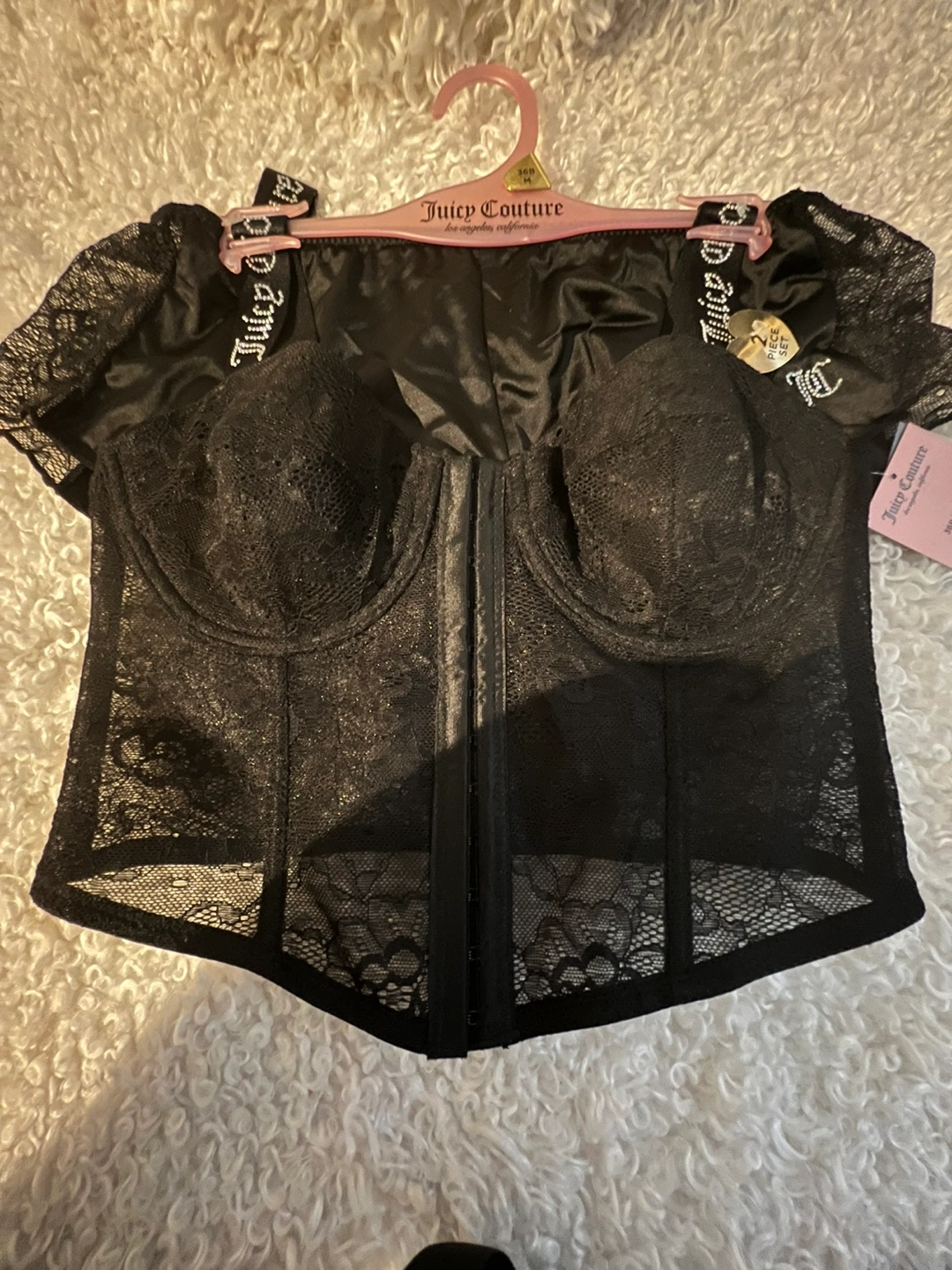 Black lace corset and shorts set. Has adjustable straps and ruffles on the shorts. New with tags.