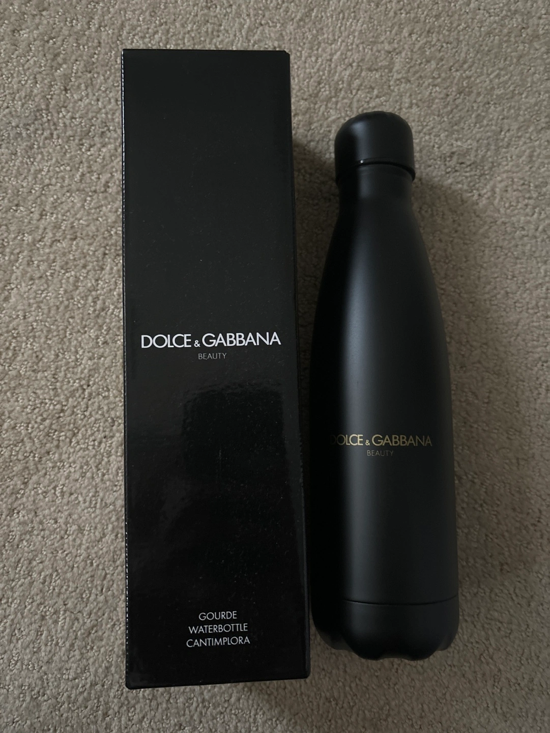 Brand new - Matte Black with gold detail water bottle with a black box. Waterbottle