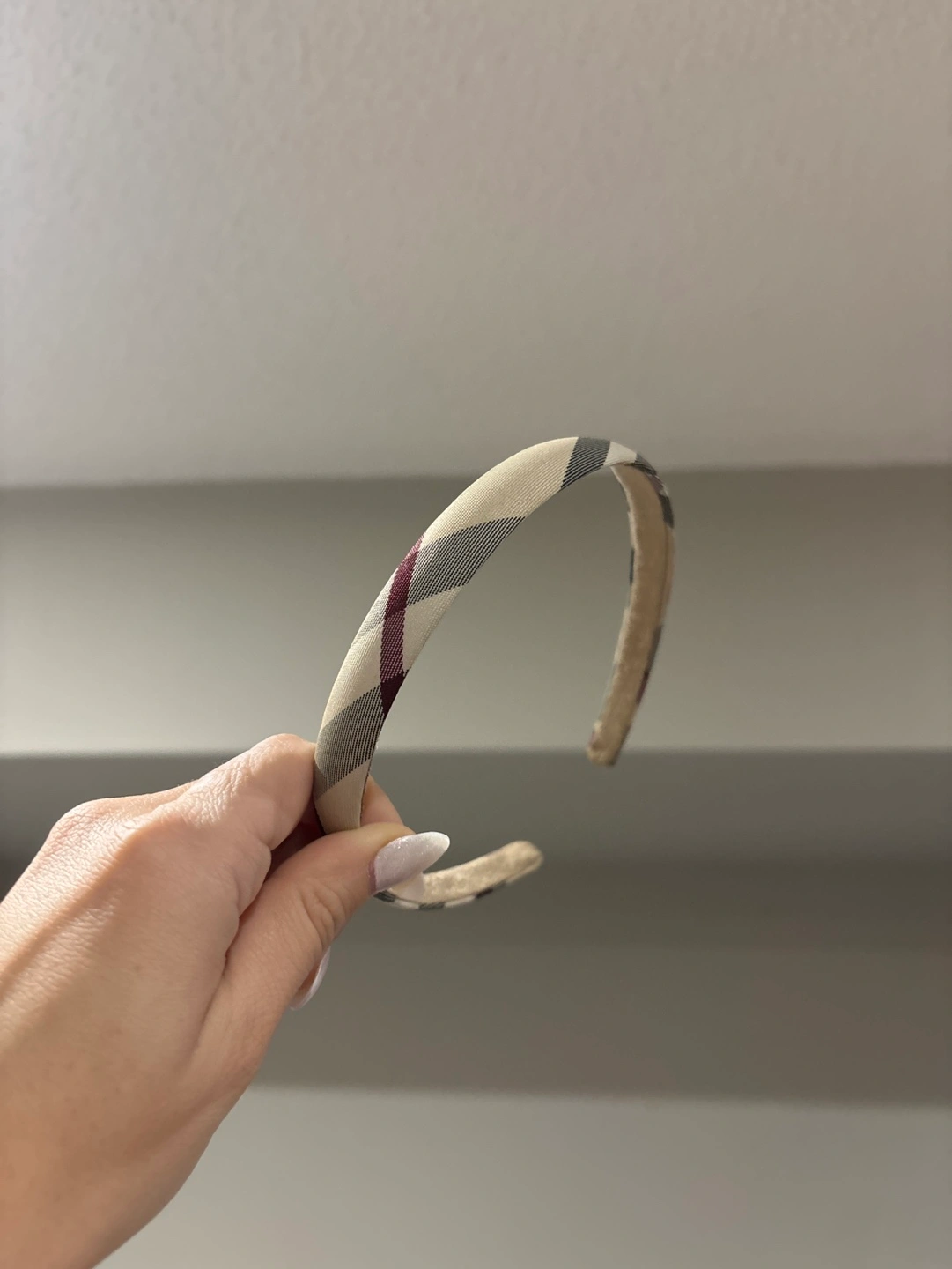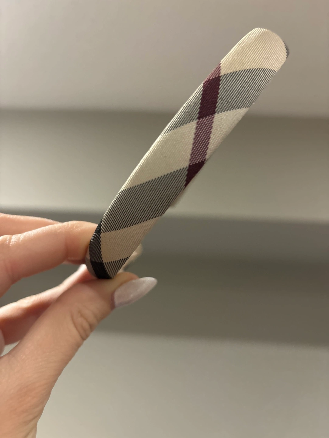 Beige and burgundy plaid headband. Great for everyday wear or to dress up a casual outfit.