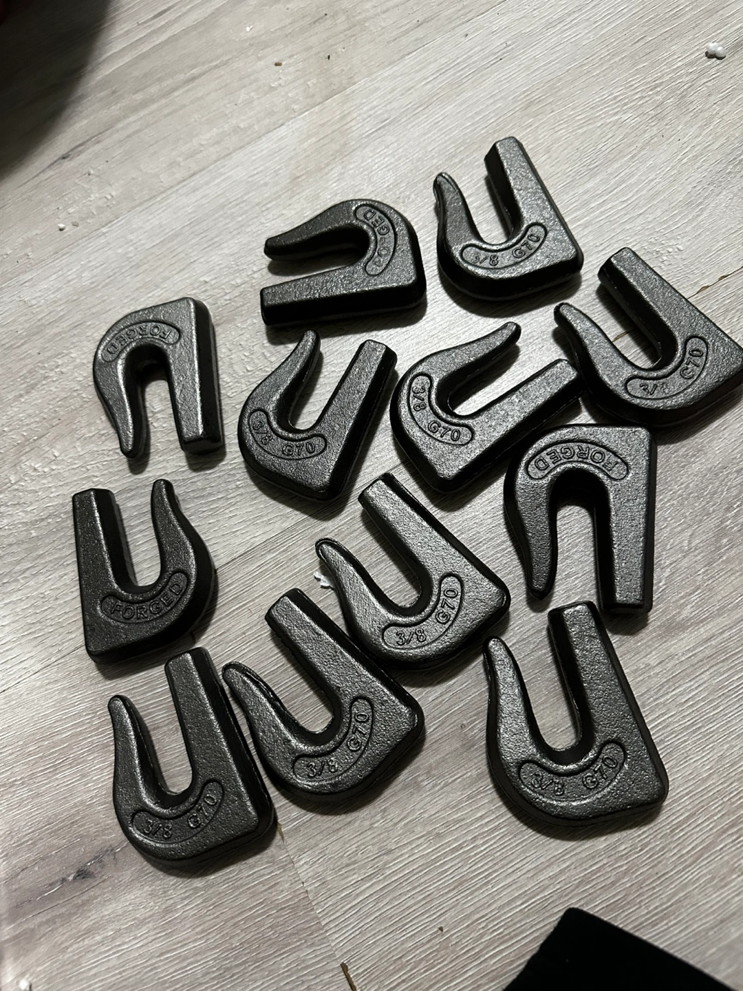 Grade 70 clevis grab hooks. 12 pieces, 3/8 inch. Suitable for a variety of applications.